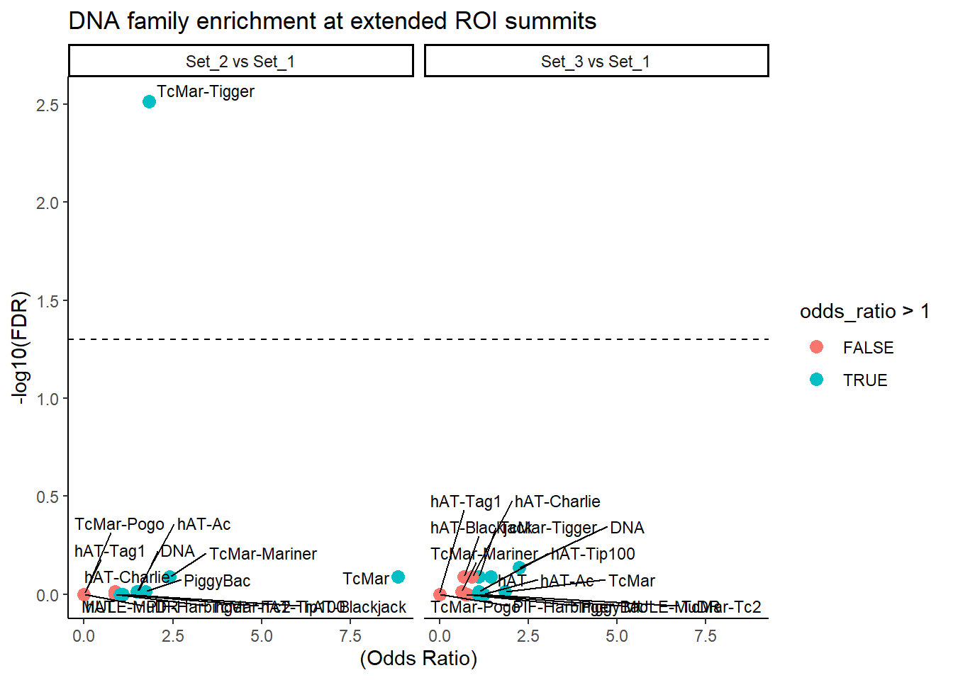 ggplot(DNA_results, aes(x = (odds_ratio), y = -log10(FDR),label = TE_type)) +