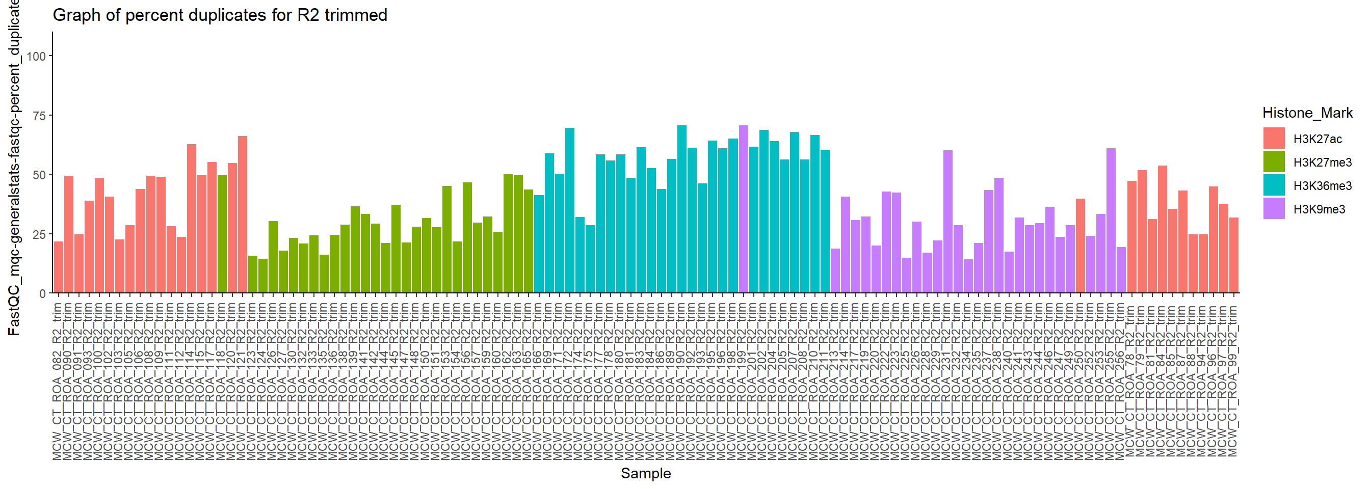 ggtitle("Graph of percent duplicates for R2 trimmed")+