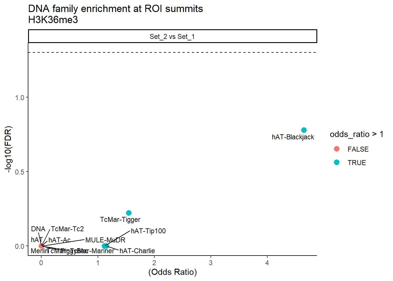 title = "DNA family enrichment at ROI summits\nH3K36me3"
