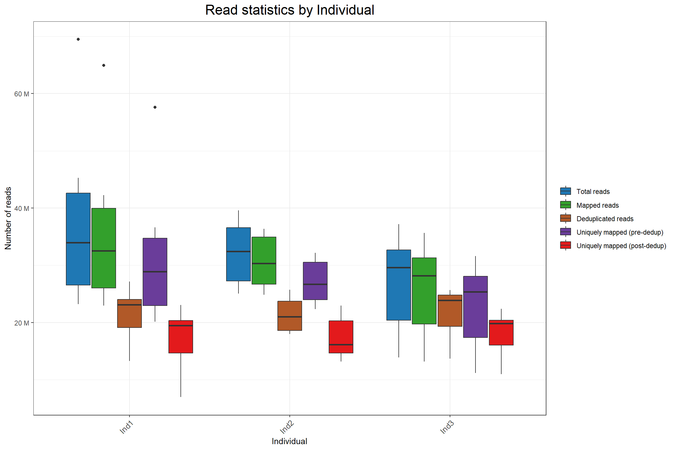 title = "Reads by Treatment: Total, Mapped, Deduplicated, and Uniquely Mapped",