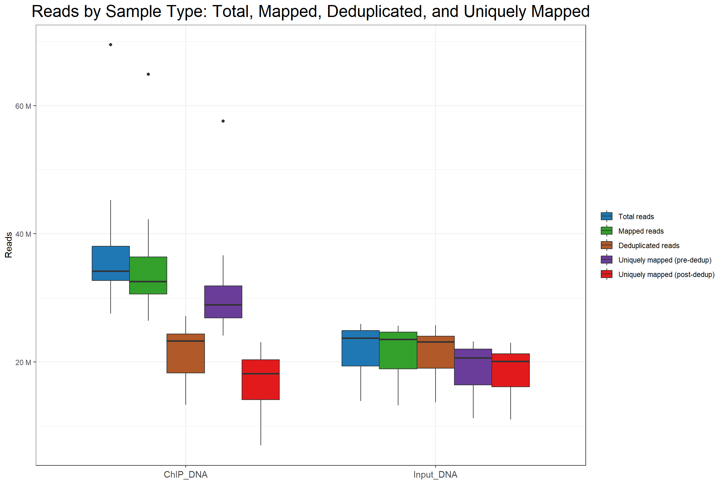 title = "Reads by Sample Type: Total, Mapped, Deduplicated, and Uniquely Mapped",