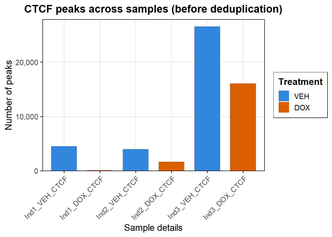 title = "CTCF peaks across samples (before deduplication)",