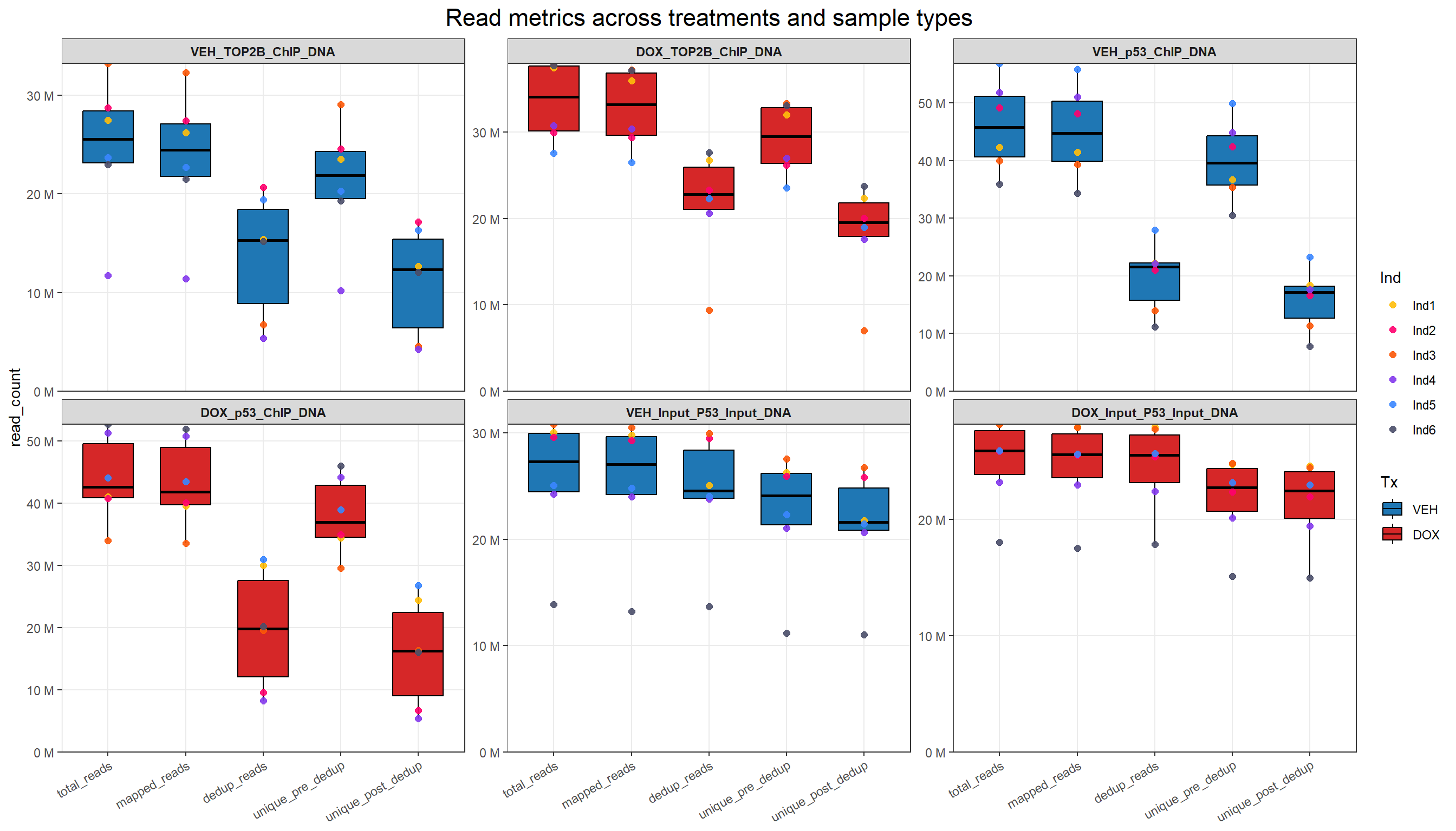 # 📊 Comparison of VEH and DOX read metrics across ChIP/Input samples