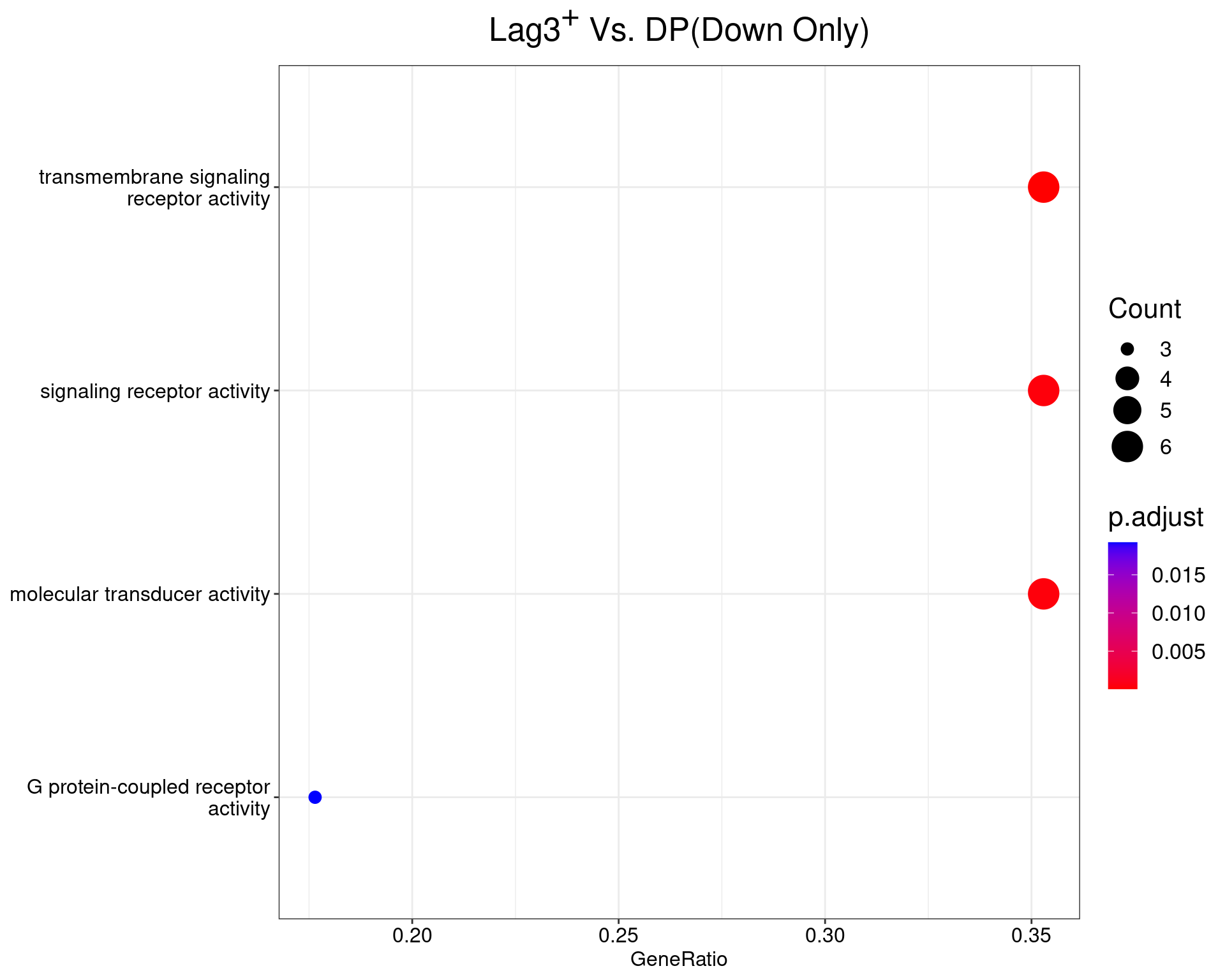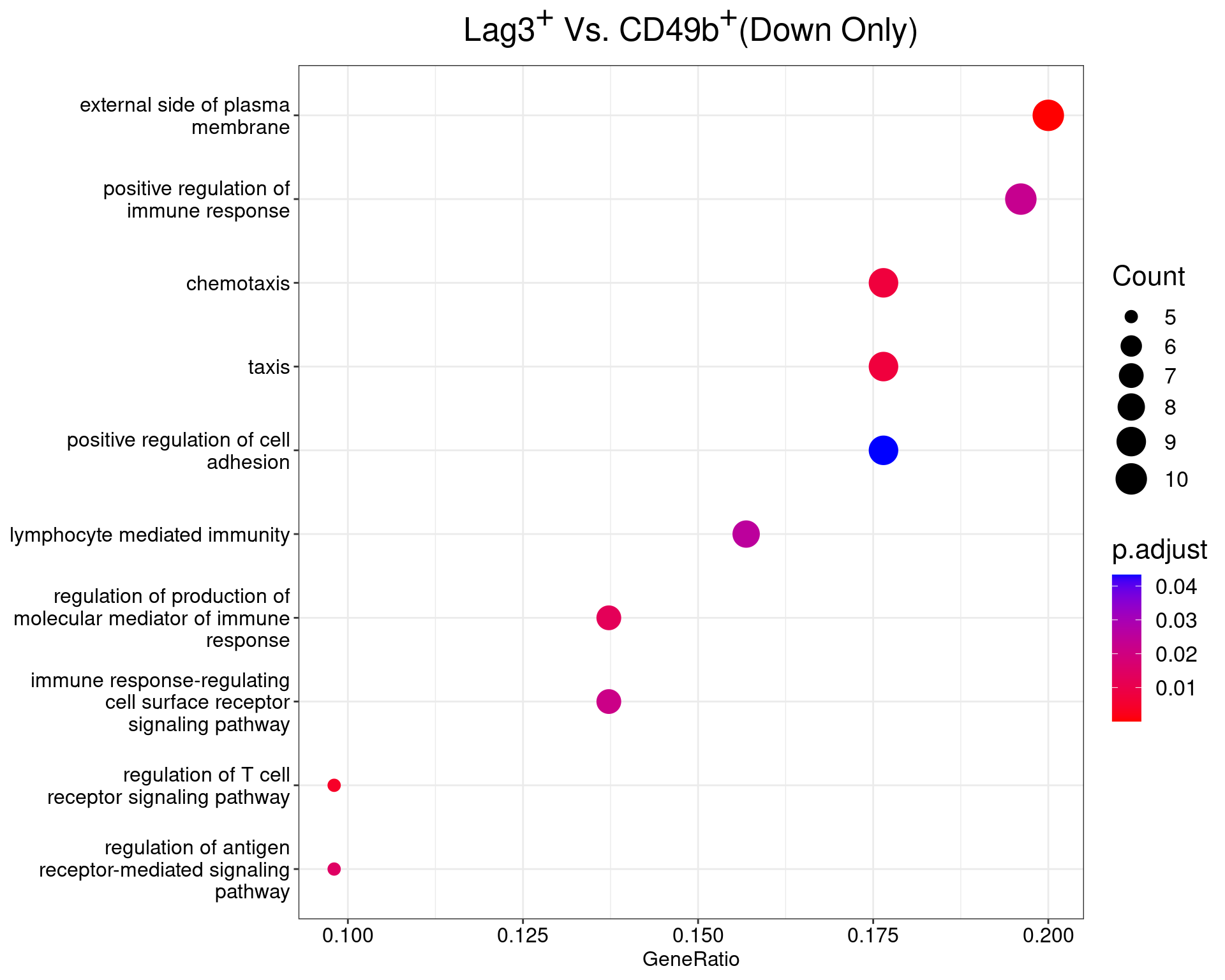 ggtitle(expression(paste("Cd49", b^{textstyle("+")}, " Vs. DP (Down Only)"))) +
