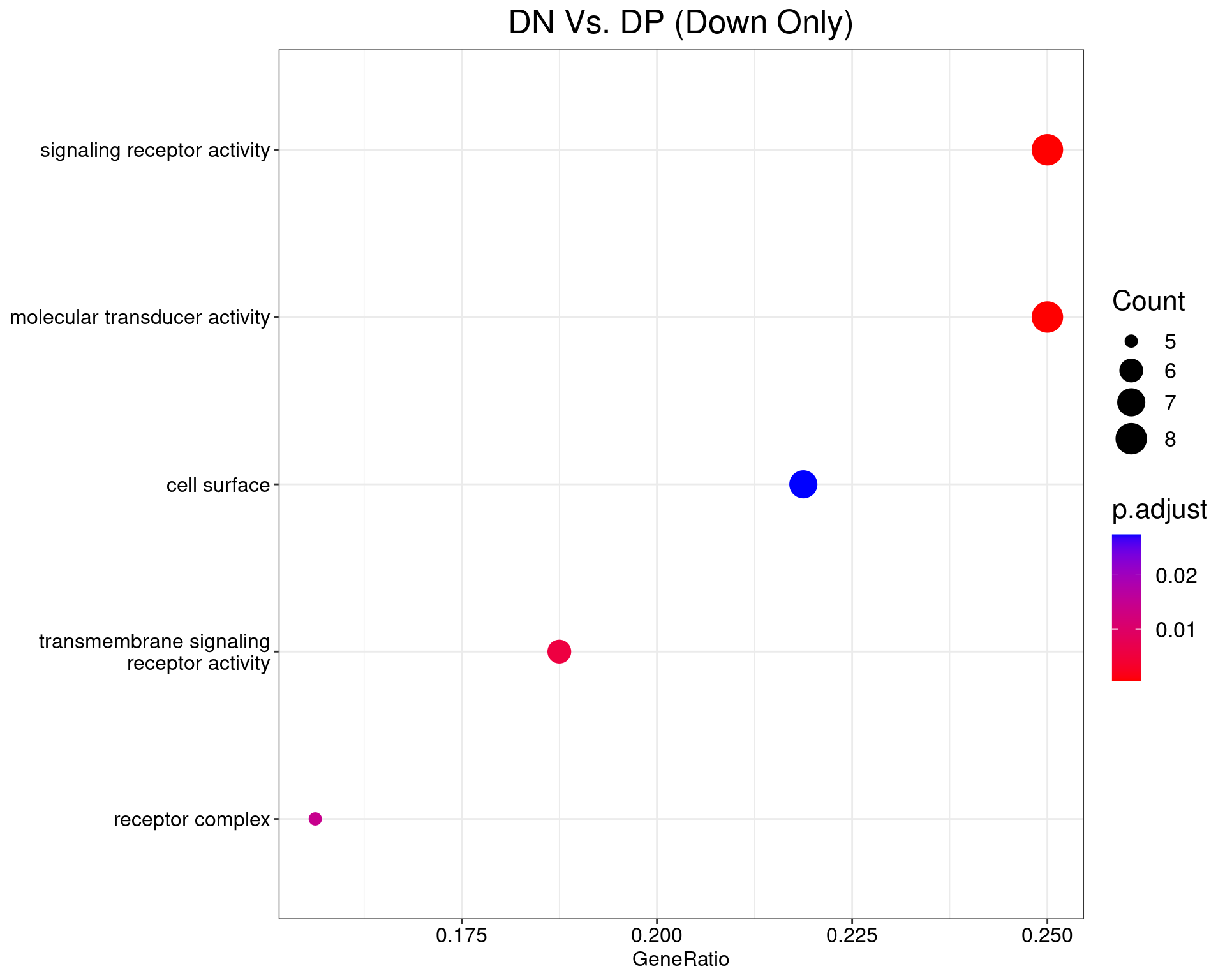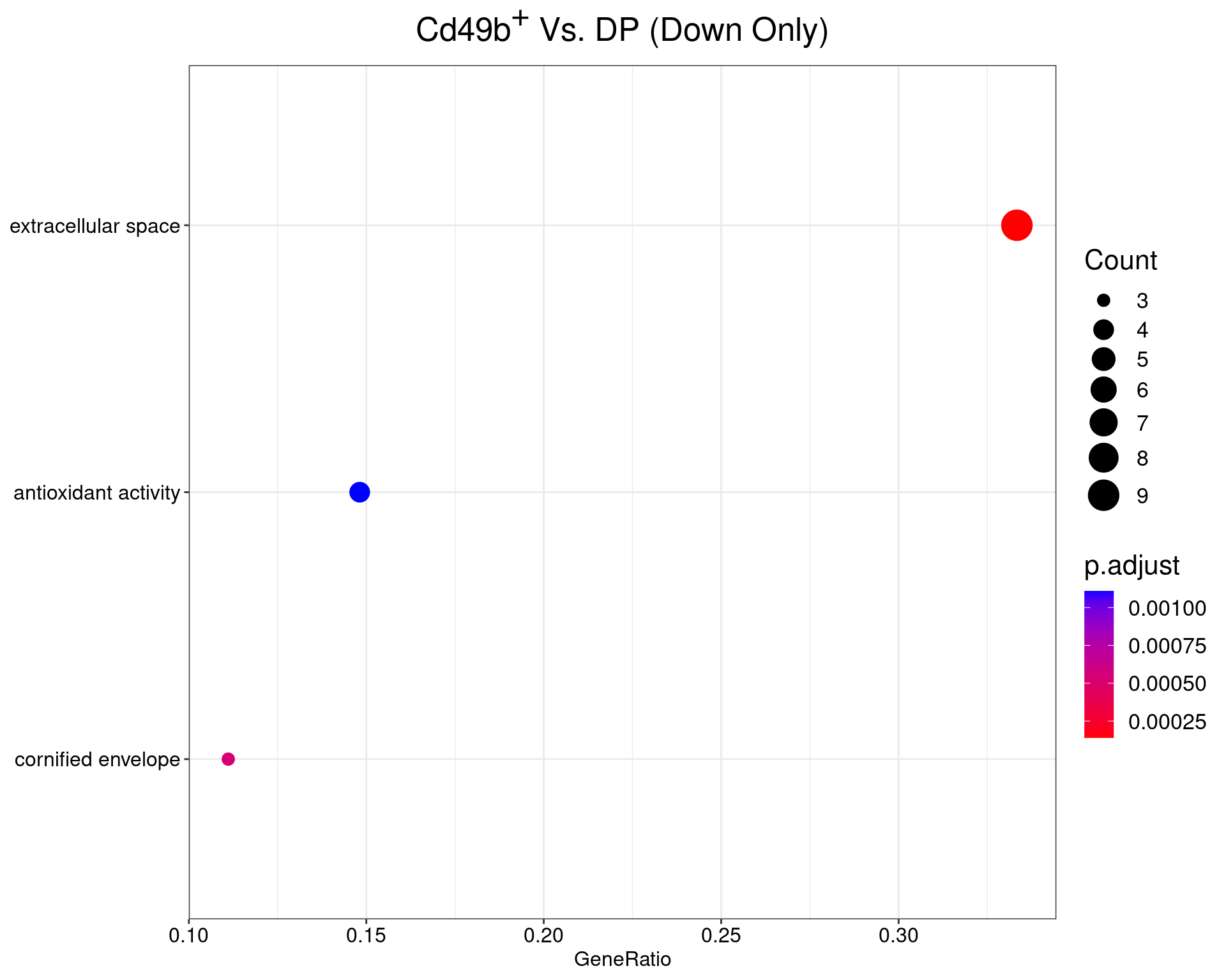 ggtitle(expression(paste("Cd49", b^{textstyle("+")}, " Vs. DP (Down Only)"))) +