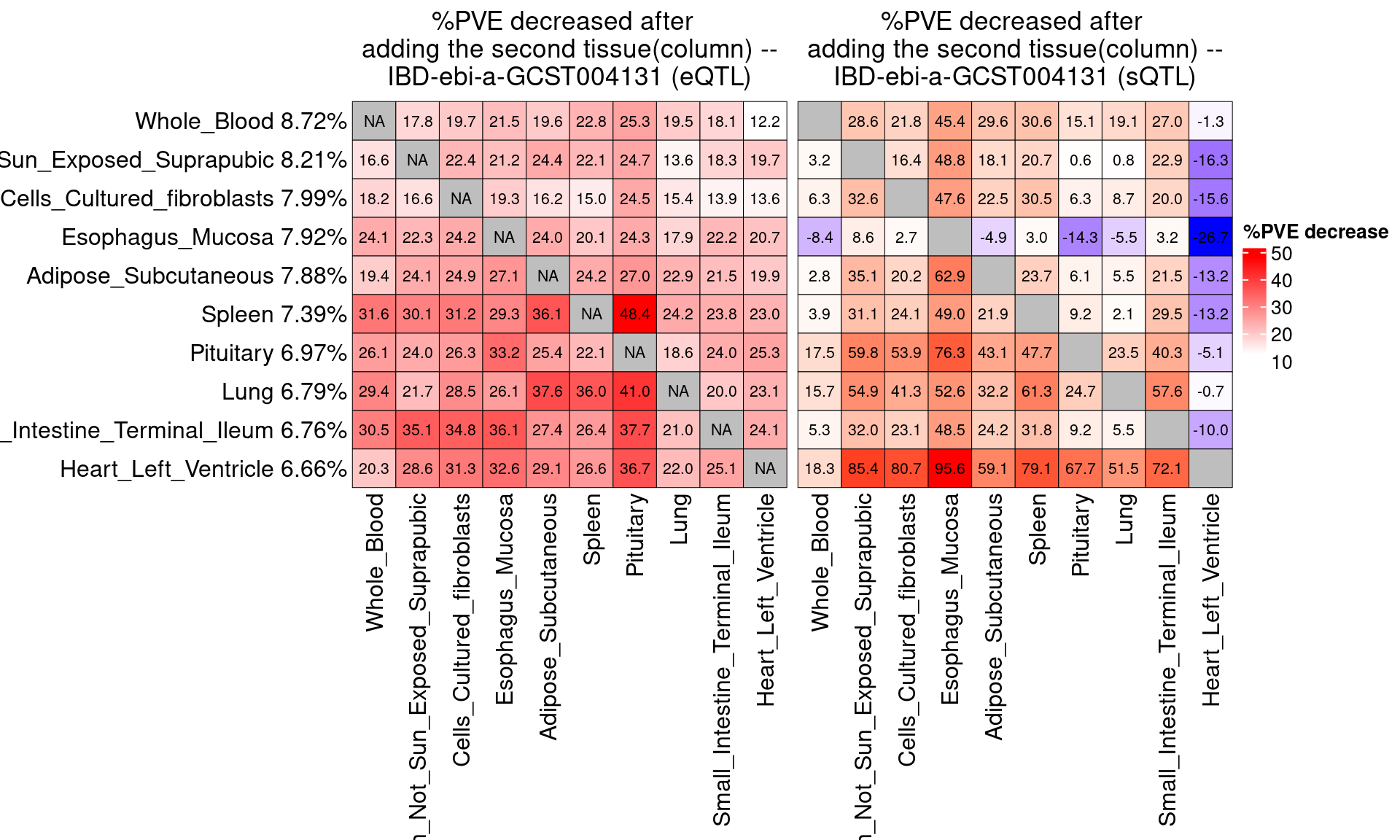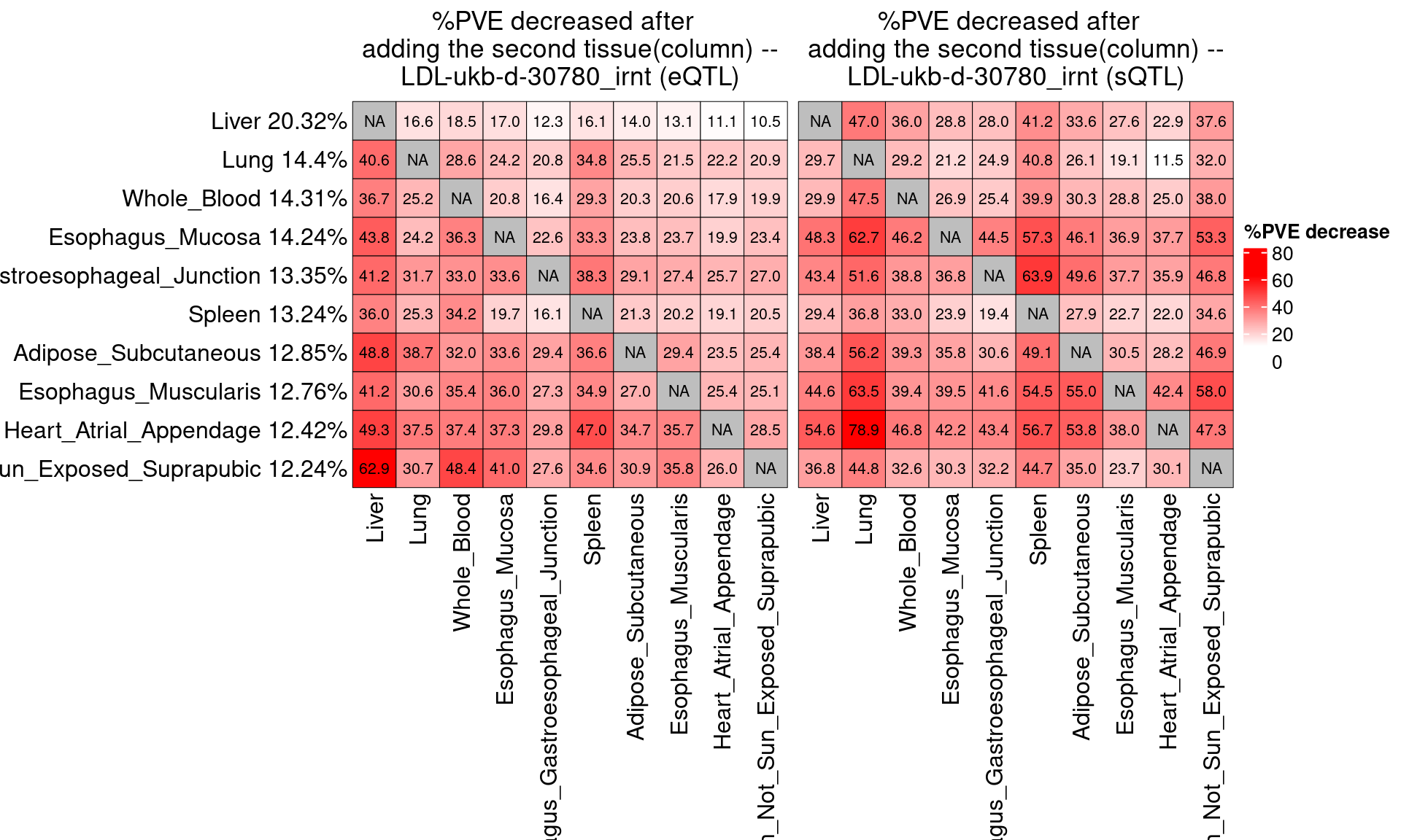 column_title = paste0("%PVE decreased after \n adding the second tissue(column) -- \n", trait," (sQTL)"),