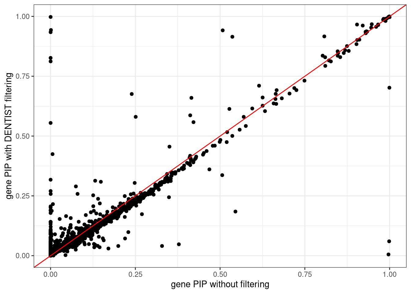 C9orf3 gene PIP decreased significantly after DENTIST filtering.