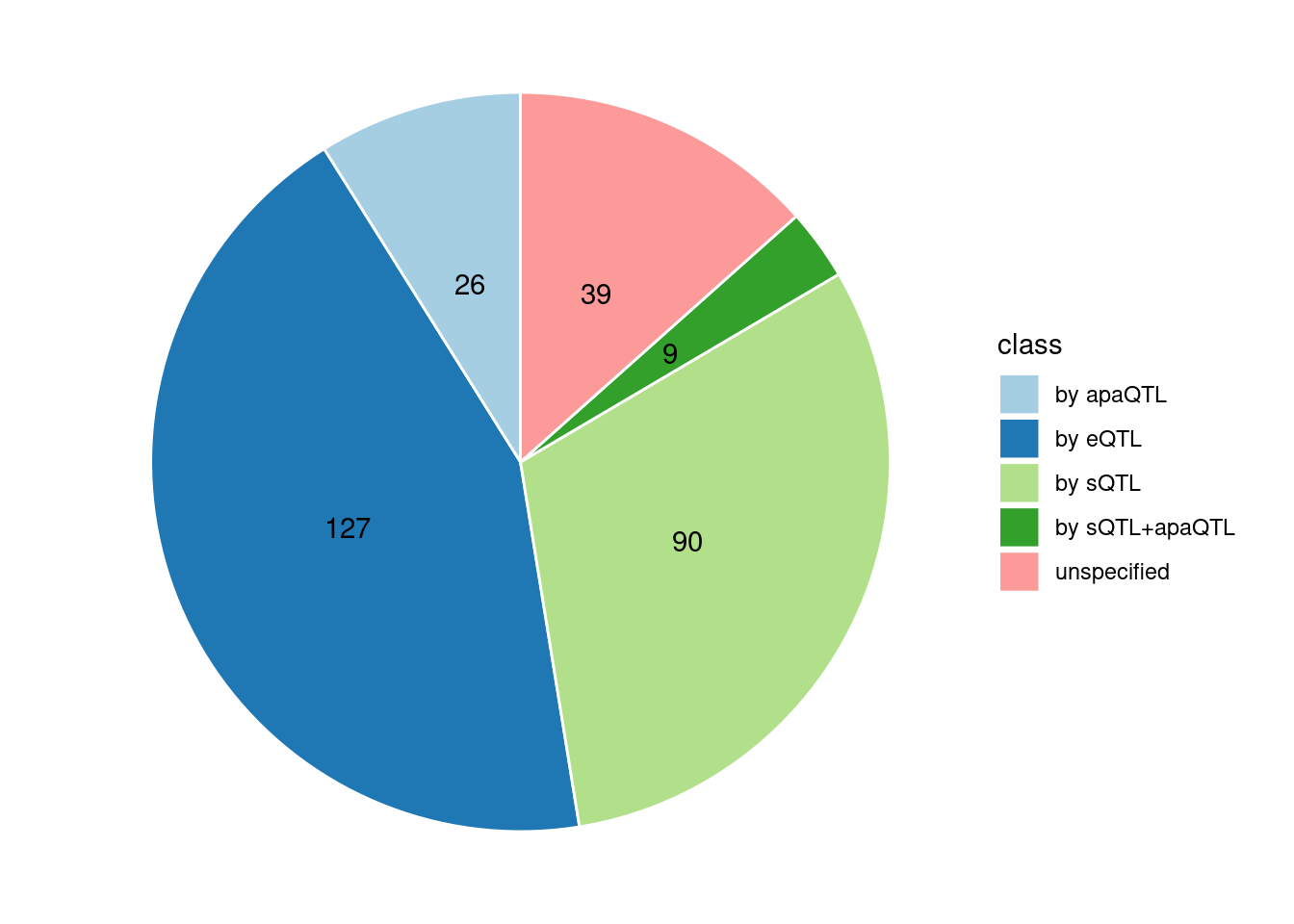• by apaQTL: Number of genes where the ratio of apaQTL to combined PIP is greater than 0.8.