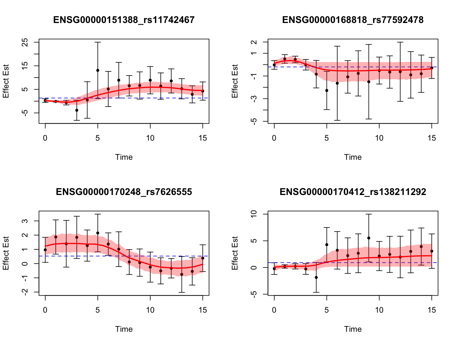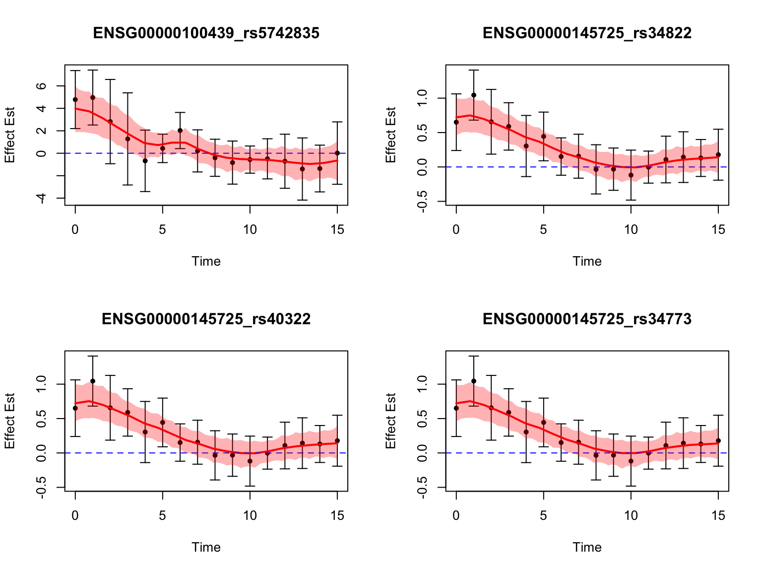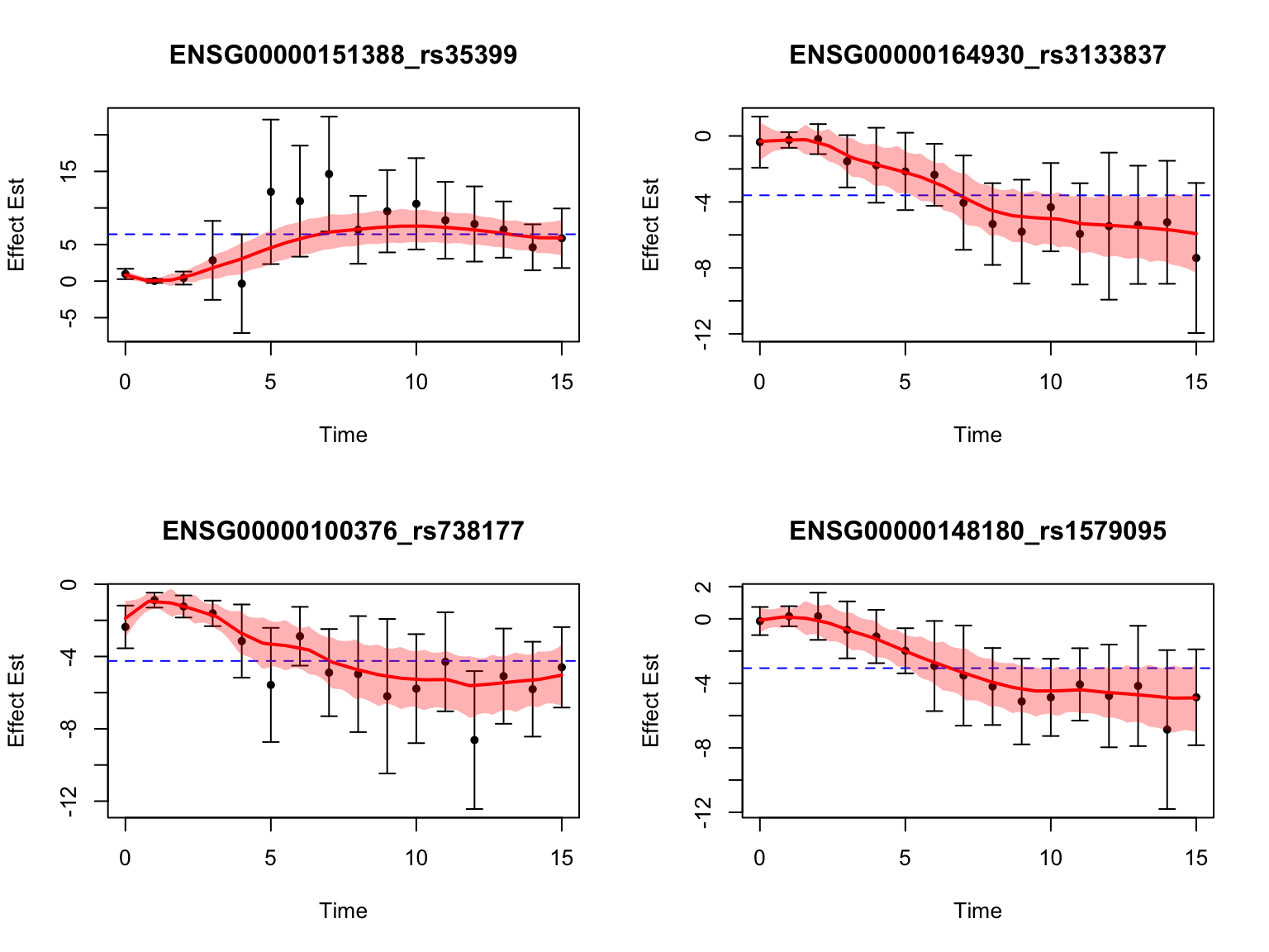After this step, we have the effect size of eQTLs for each gene-variant pair at each time point, as well as its standard error.