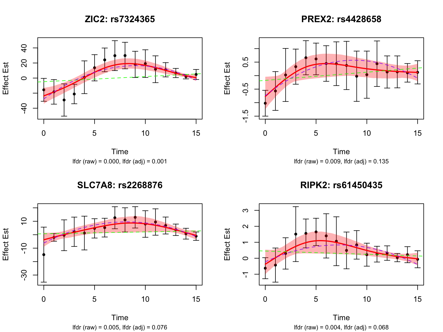 After this step, we have the effect size of eQTLs for each gene-variant pair at each time point, as well as its standard error.