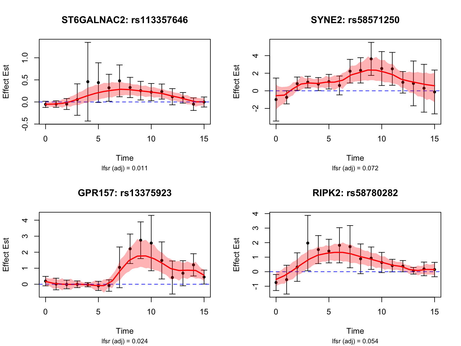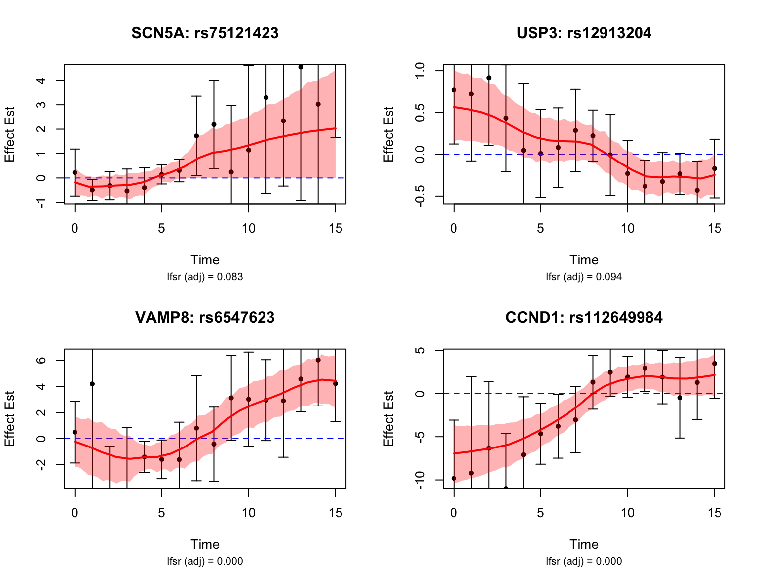 After this step, we have the effect size of eQTLs for each gene-variant pair at each time point, as well as its standard error.