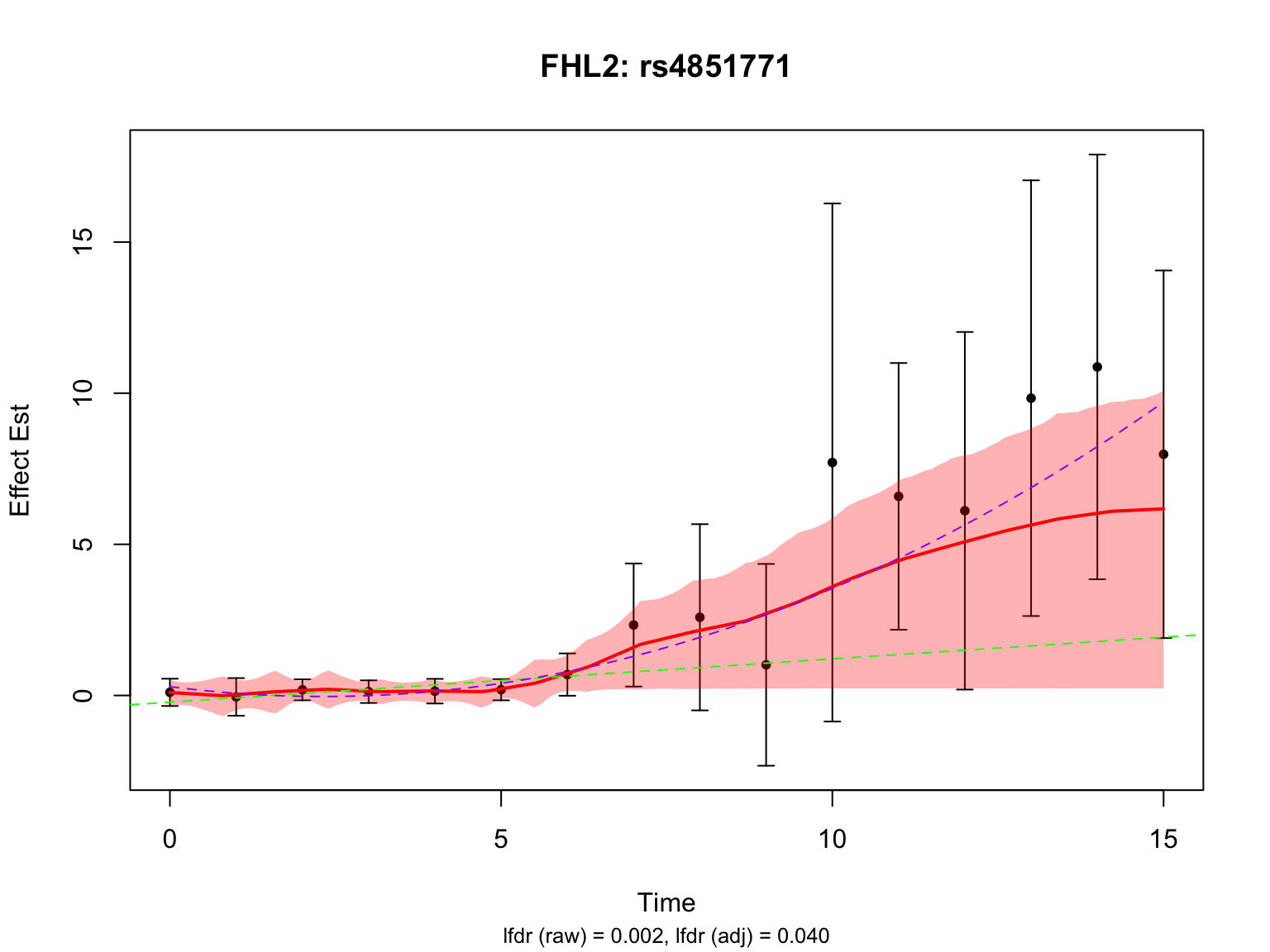 In this analysis, we will focus on the FASH(1) model that assumes a first order IWP and tests for dynamic eQTLs.