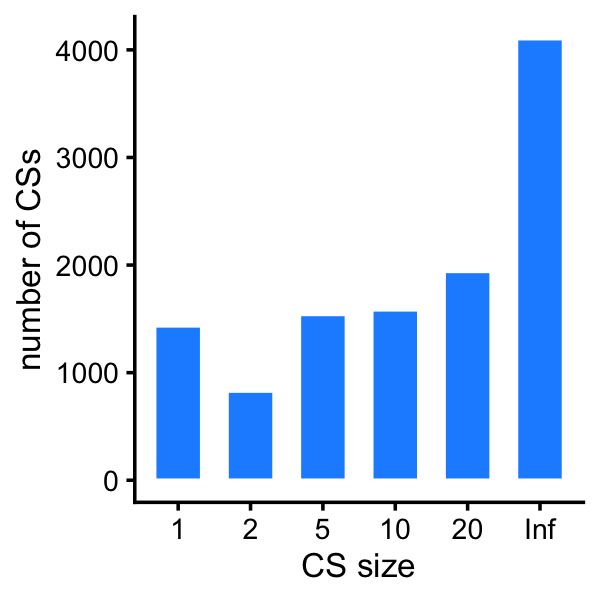 Plot a histogram of the CS sizes for the RNA-seq fine-mapping: