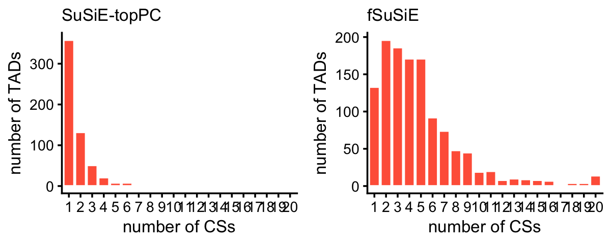 labs(x = "number of CSs",y = "number of TADs",title = "fSuSiE") +
