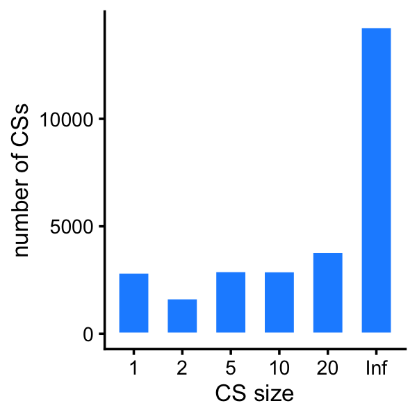 Plot a histogram of the CS sizes for the RNA-seq fine-mapping: