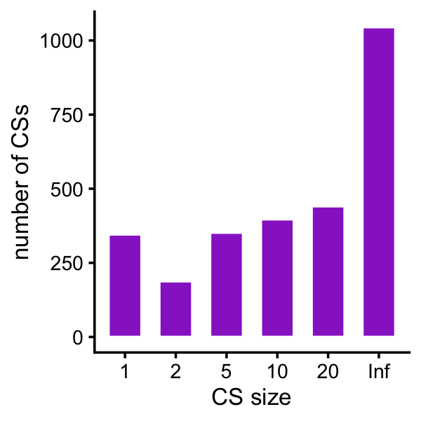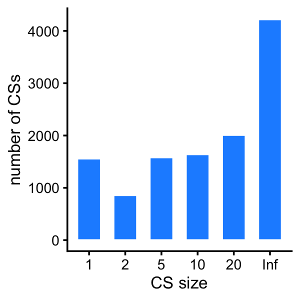 Plot a histogram of the CS sizes for the RNA-seq fine-mapping: