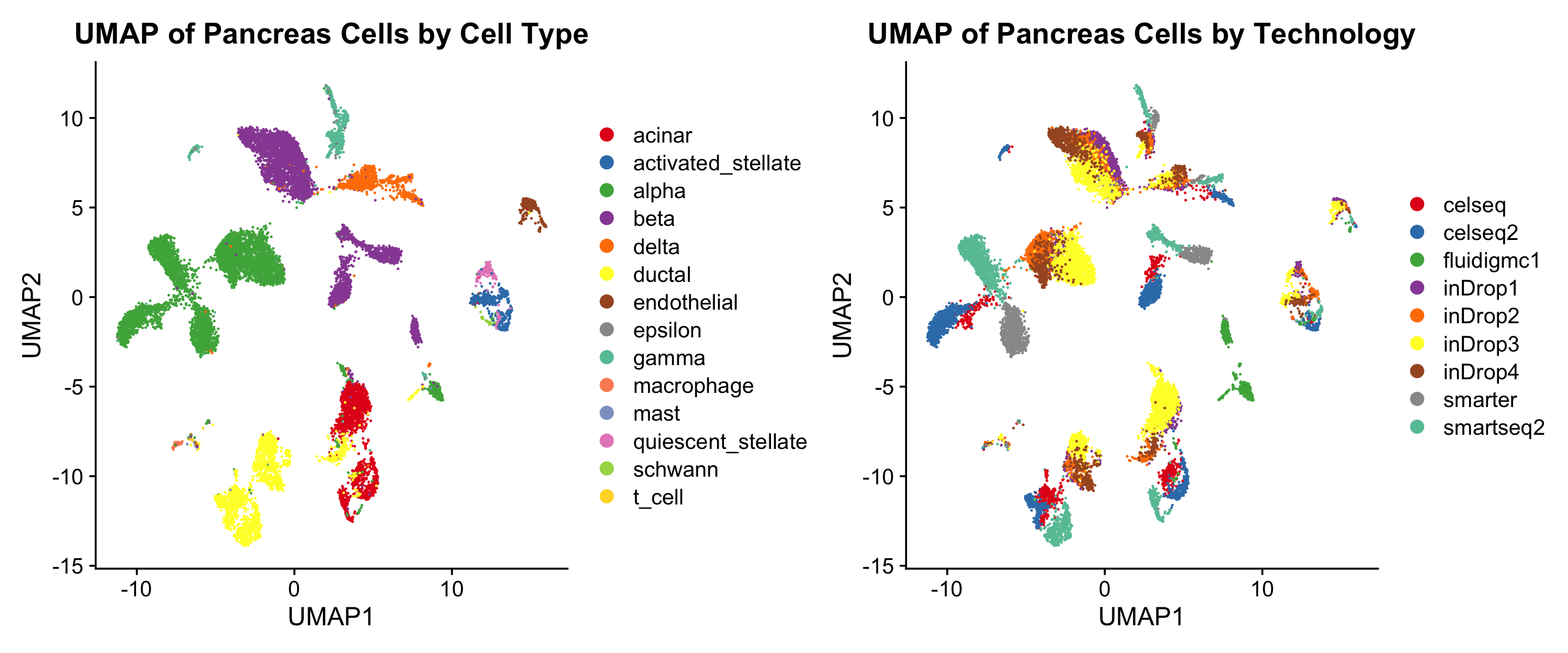 ggtitle("UMAP of Pancreas Cells by Technology")