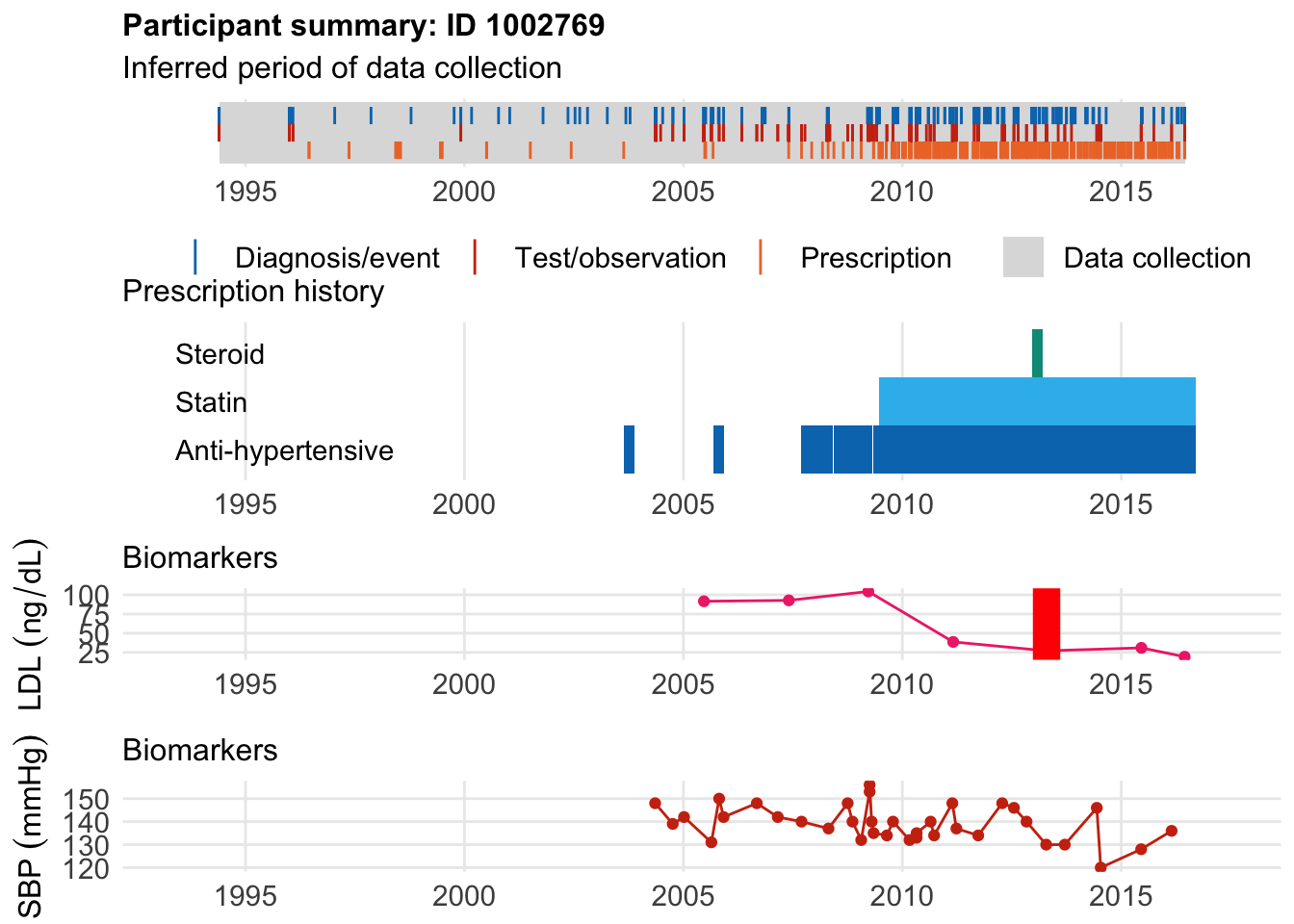 People are complicated. Look at this transition through lifestages for an individual based on diagnostic codes, lab data, and biomarkers. We look at this example overlaying biomarkers for Diabetes.