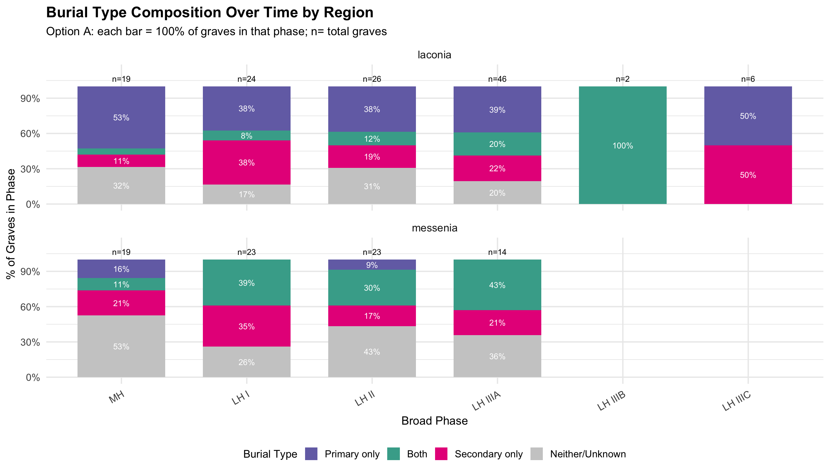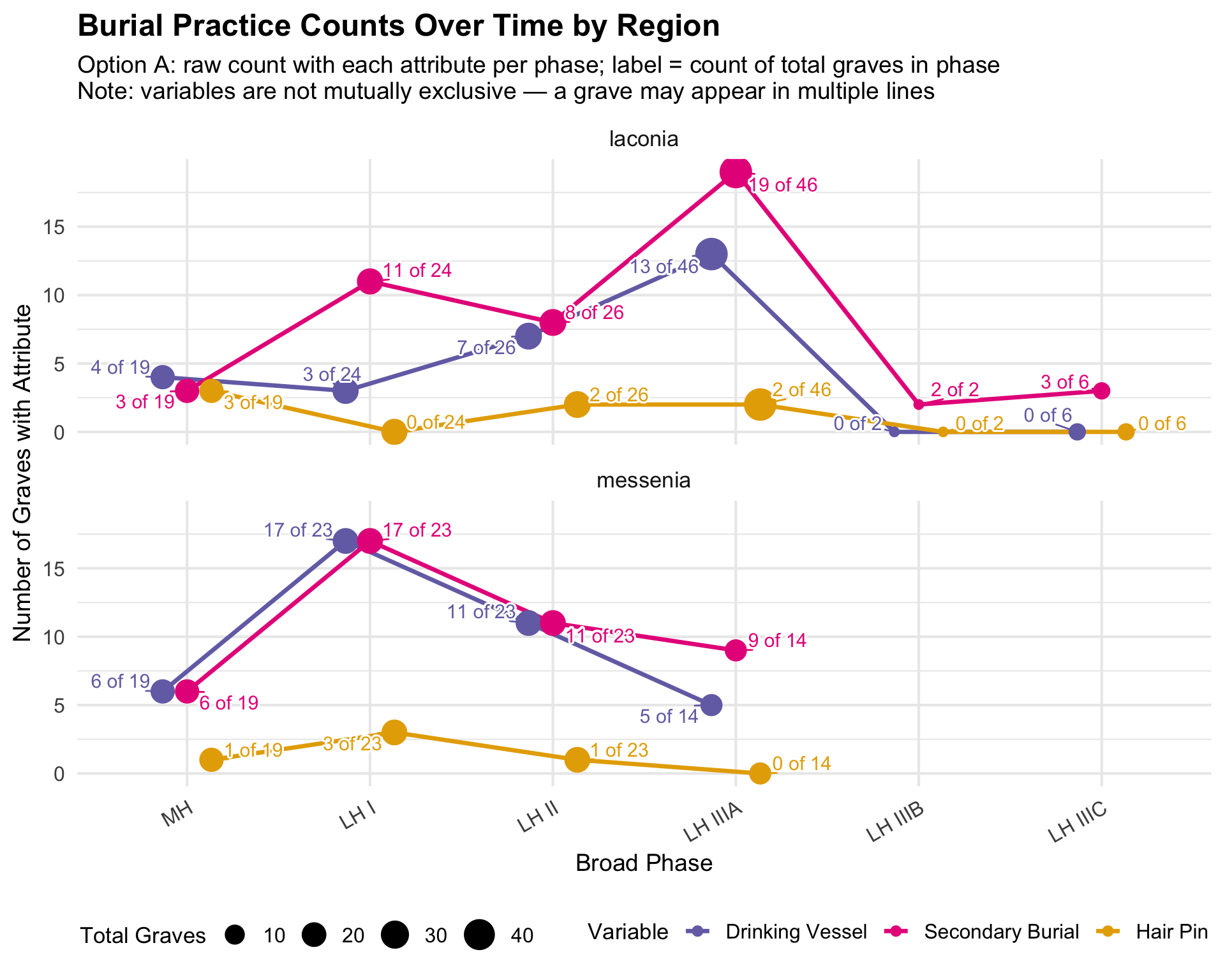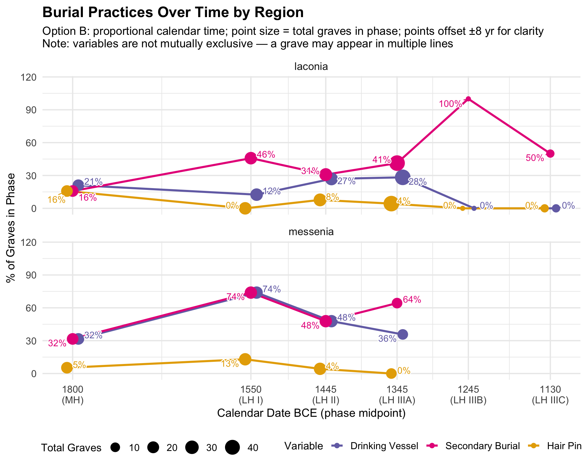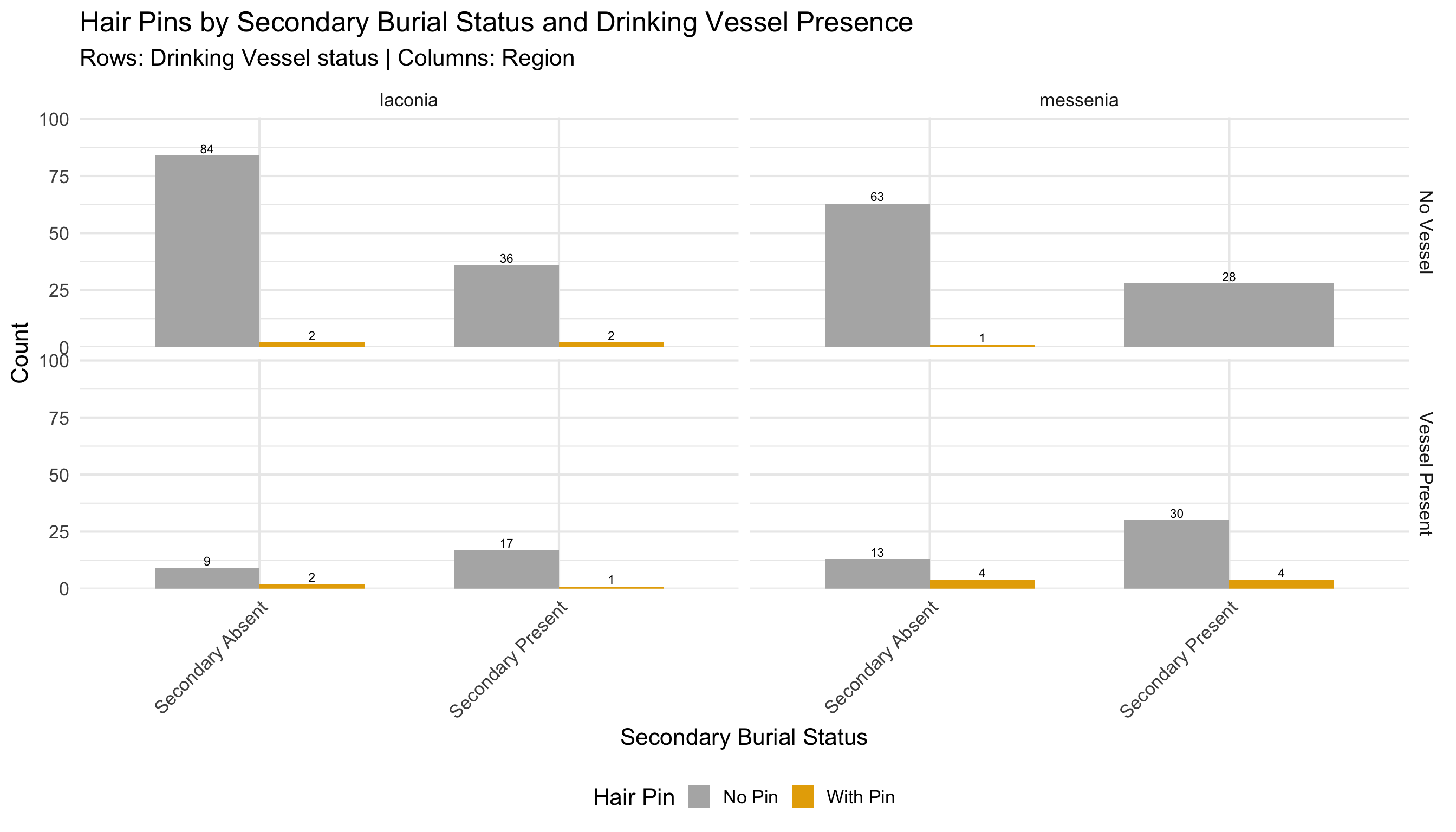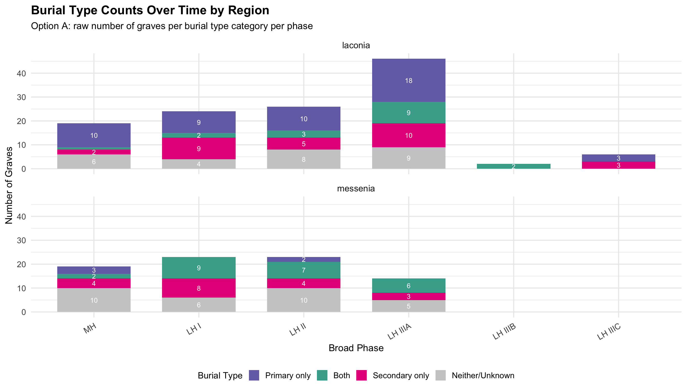 This document presents the quantitative analyses underlying the thesis. The dataset comprises funerary contexts from Laconia and Messenia spanning the Middle Helladic through Late Helladic periods (approximately 2000–1070 BCE). Each record corresponds to a single tomb or grave feature and includes information on tomb type, chronological attribution, burial practice, and the presence of drinking vessels, skeletal remains, and hair pins.