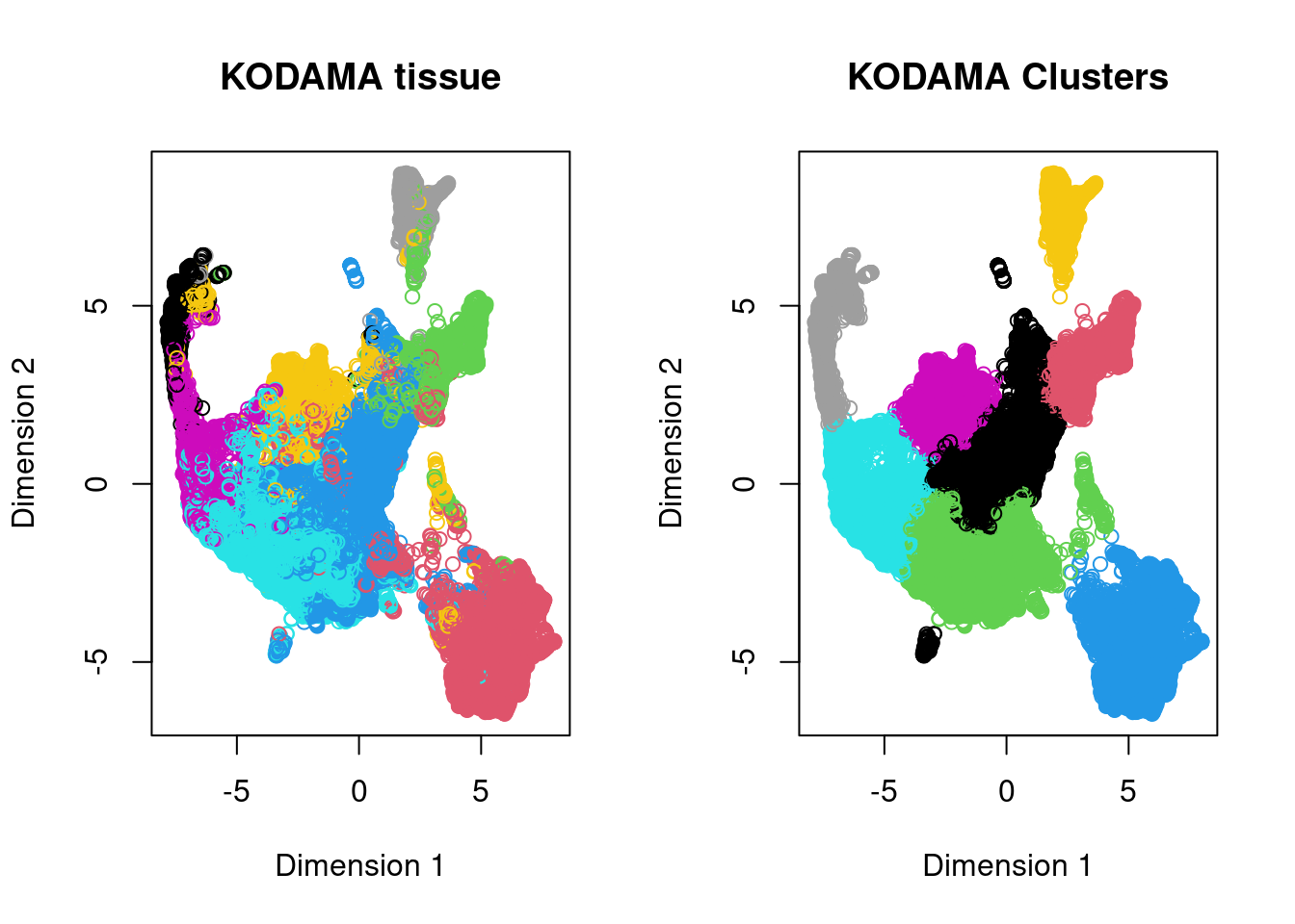 Spatial transcriptomics is a powerful technique for studying the spatial organization of gene expression within tissues. Here, we apply KODAMA to analyze the spatial transcriptomic data that measured the mouse preoptic region of the hypothalamus using the MERFISH technology from Moffitt et al., 2018. Link to study. We focus on the tissue sections Bregma -0.04, -0.09, -0.14, -0.19, and -0.24 mm from a consecutive brain hypothalamic region of animal 1. The original data can be downloaded from Dryad.