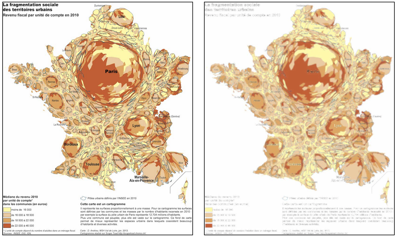 ] Ces réflexions permettent se poser des questions de **contexte**, pour mieux comprendre les questions de lisibilité : -- - Quel *rôle* j'endosse quand je produit une carte ? -- - À quoi doit *servir* ma carte, comment doit-on y réagir ? -- - À quel *public* est-elle destinée ? Que doit-il savoir pour la comprendre ? -- - Au final, comment *fonctionne* ma carte ? --- class: middle **→** Selon ces différents positionnements, la carte va devoir s'adapter pour être **efficace**, au sens de J. Bertin (communication), ou, plus généralement du *design*, c'est à dire *accomplir sa fonction* (faire réagir, émouvoir...). **→** Il faut donc s'interroger sur sa **lisibilité**, sa réception dans le cadre du fonctionnement prévu. --- class: middle ## Différents types de cartes et de contextes de fonctionnement <p style="float: left;">