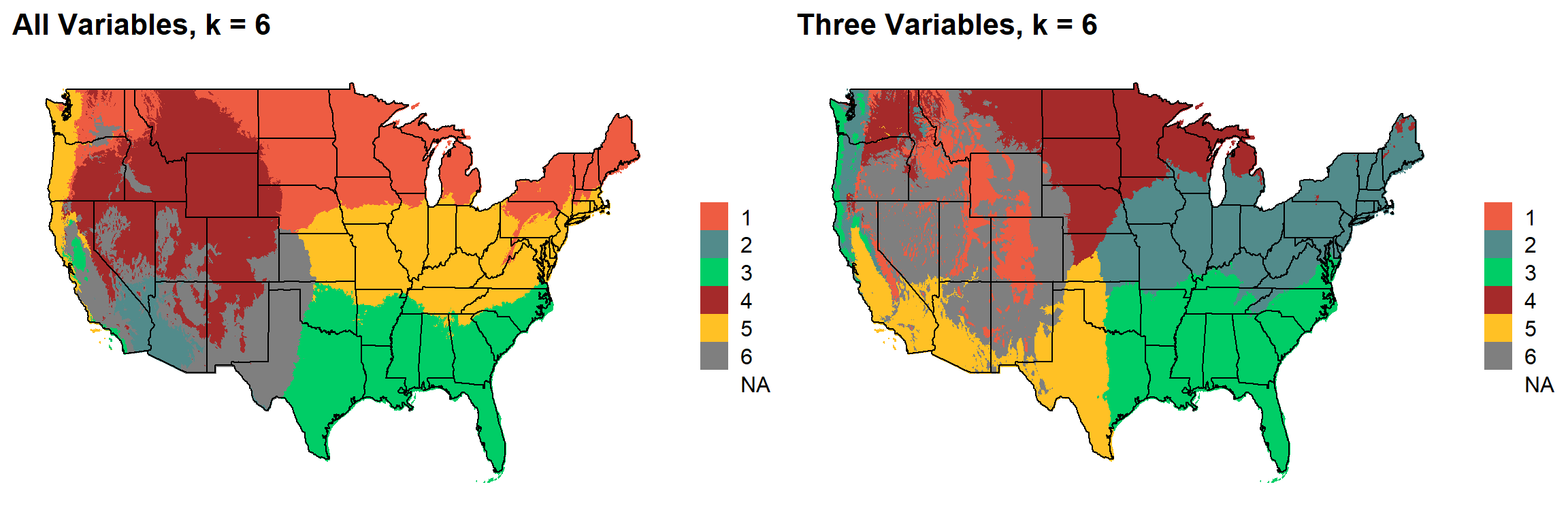 This uses k-means clustering and 30-year normal climate variables to divide the United States into distinct ecoregions.