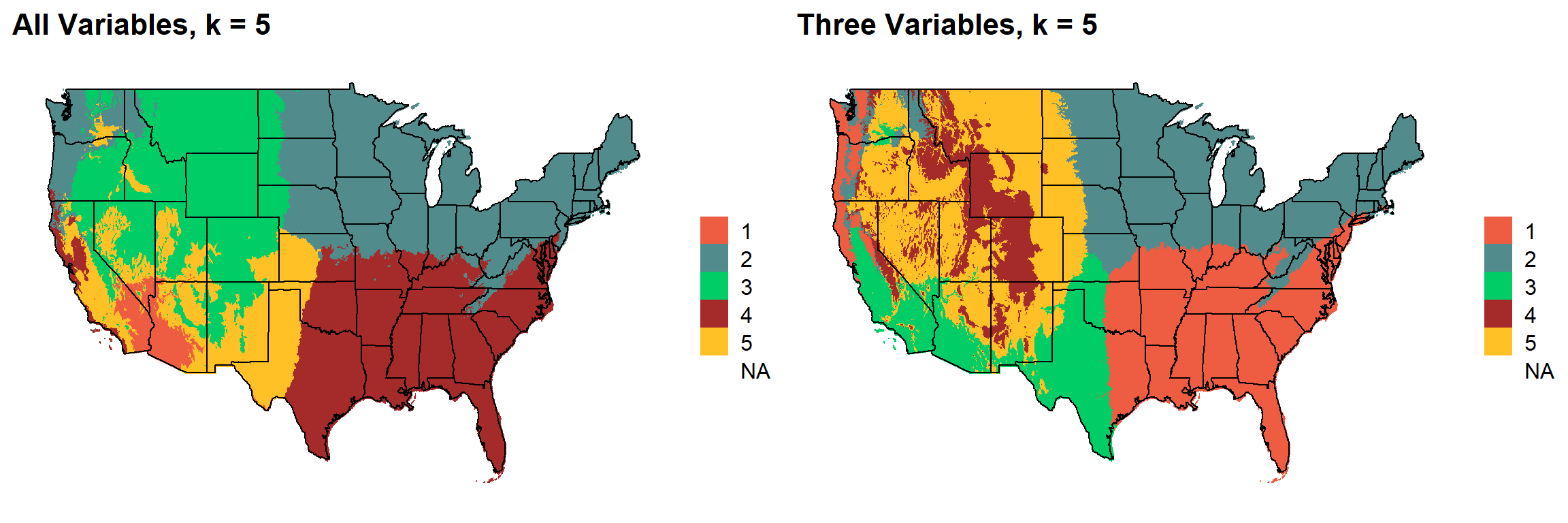 This uses k-means clustering and 30-year normal climate variables to divide the United States into distinct ecoregions.