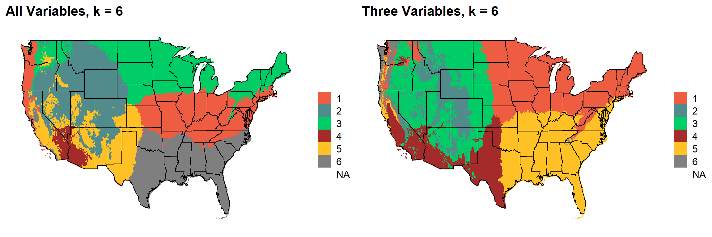 This uses k-means clustering and 30-year normal climate variables to divide the United States into distinct ecoregions.
