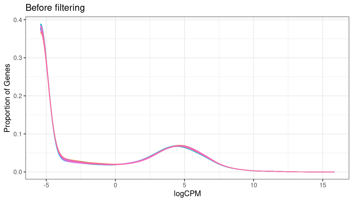 labs(x = "logCPM", y = "Proportion of Genes") + theme_bw() +