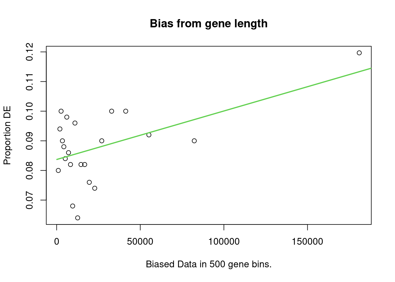 In order to do this, we will be using goseq, an R package that performs enrichment analysis whilst taking length bias into account. It does so by calculating a Probability Weighting Function (PWF), which gives the probability that a gene will be differentially expressed based on length alone.