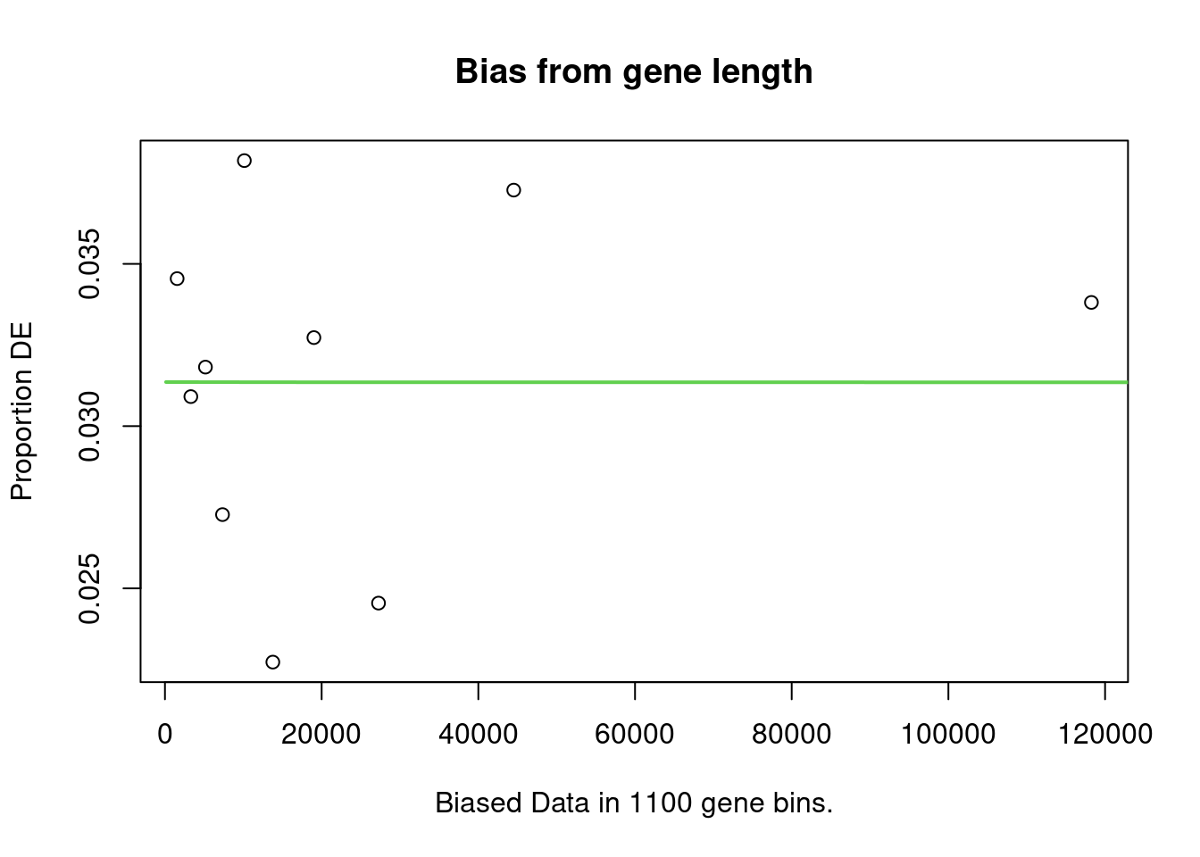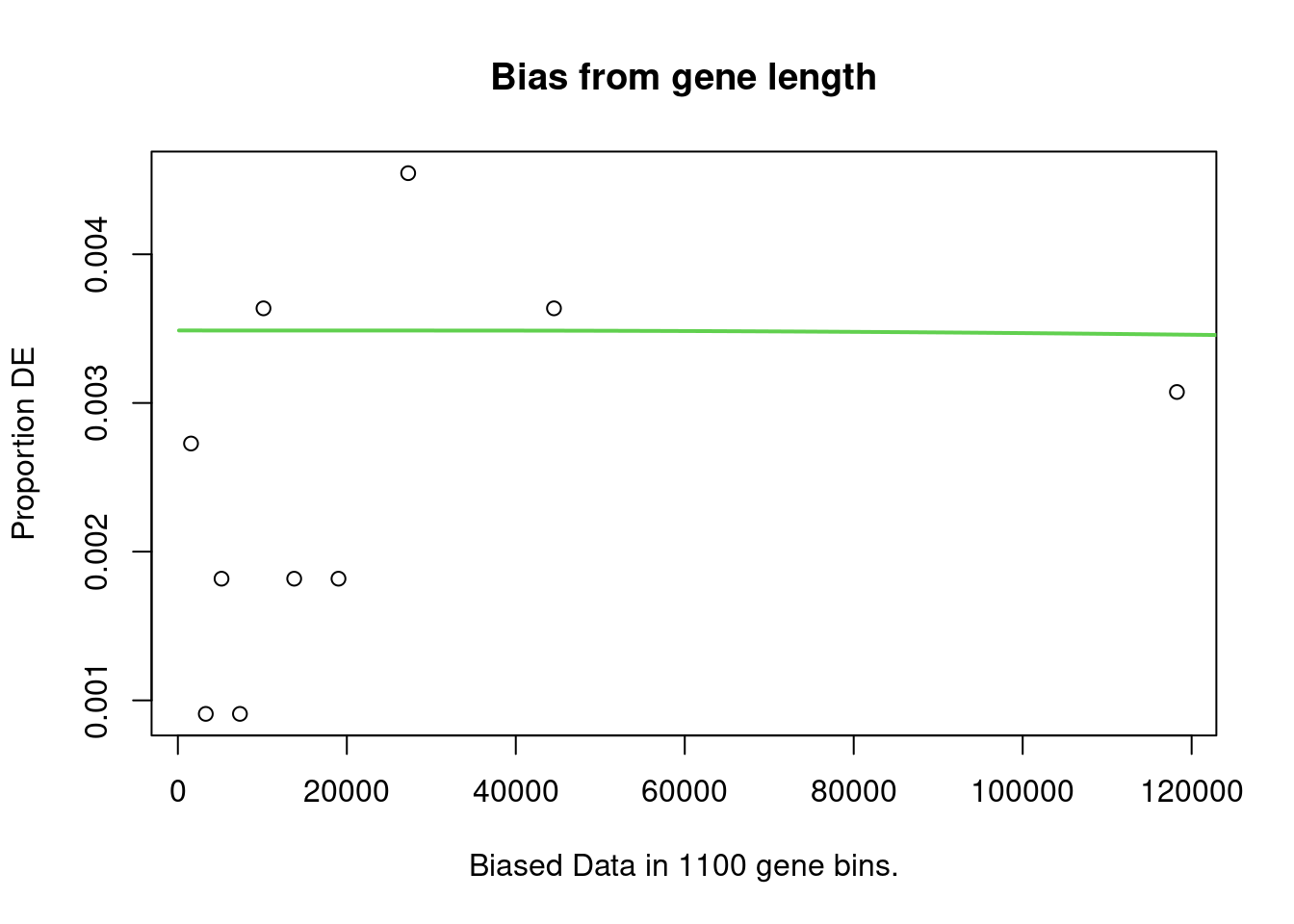 The PWD is calculated by fitting a monotonic spline to the binary data series of differential expression (1 = DE, 0= Not DE) as a function of gene length. The PWF is used to weight the chance of selecting each gene when forming a null distribution for GO category membership. The fact that the PWF is calculated directly from the dataset under consideration makes this approach robust, only correcting for the length bias present in the data.