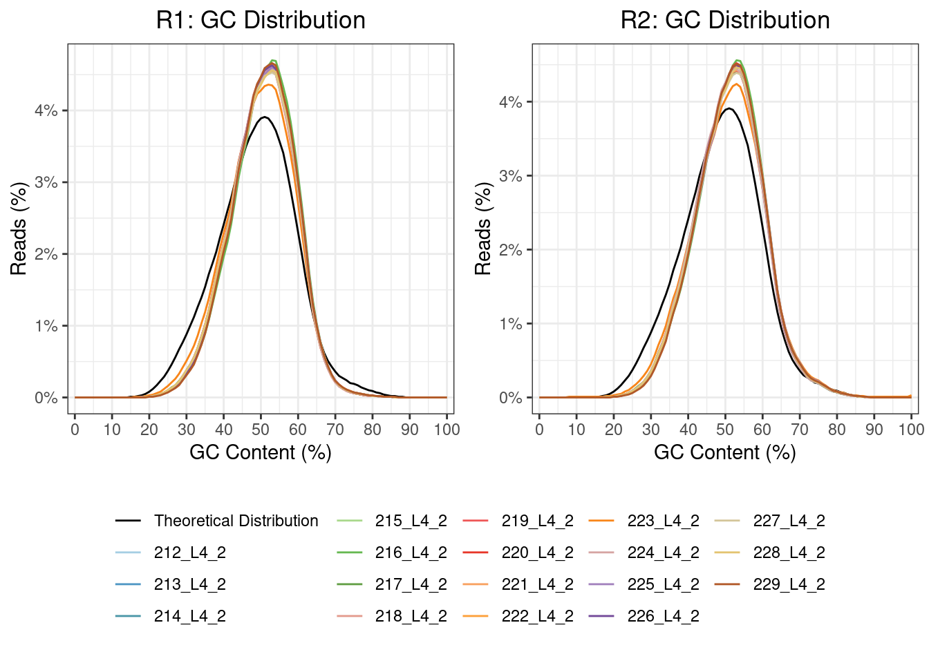GC content allows the exploration of the sequencing coverage and can indicate issues in overrepresentation. It has been observed that either high or low GC content will result in lower depth coverage.