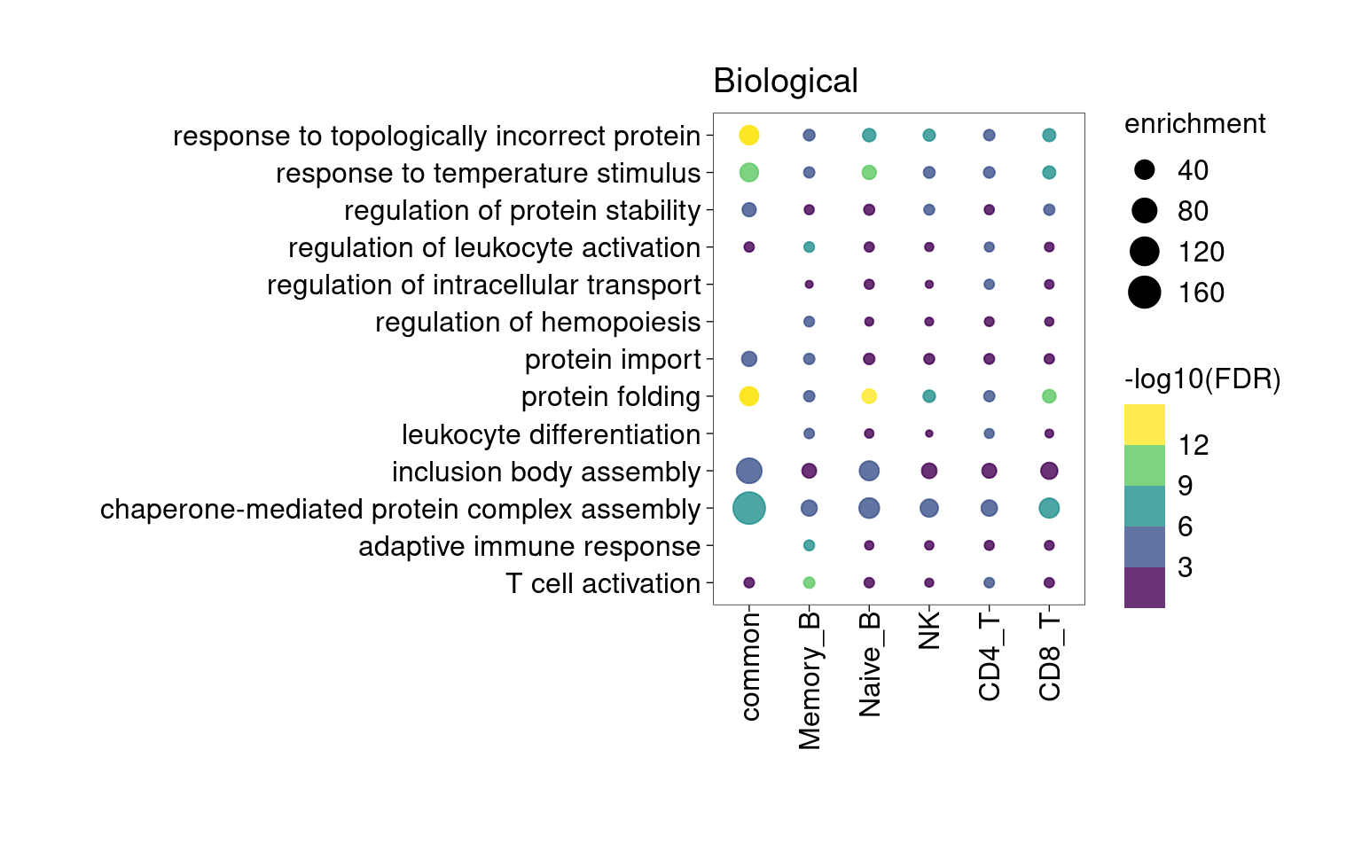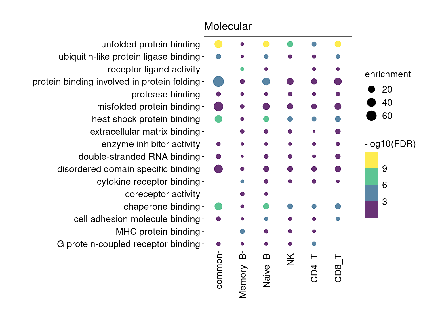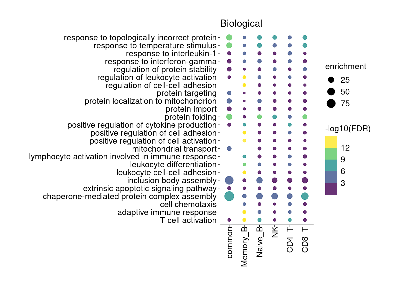 Setting lower min.pct mainly affects enrichment results from B cells and CD4+T Cells.