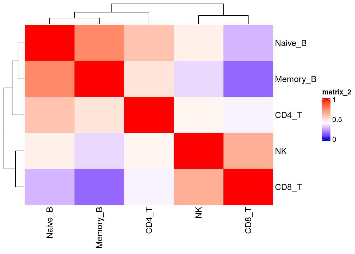 Clustering for effect sizes does not show cell type specificity except for memory B cells.