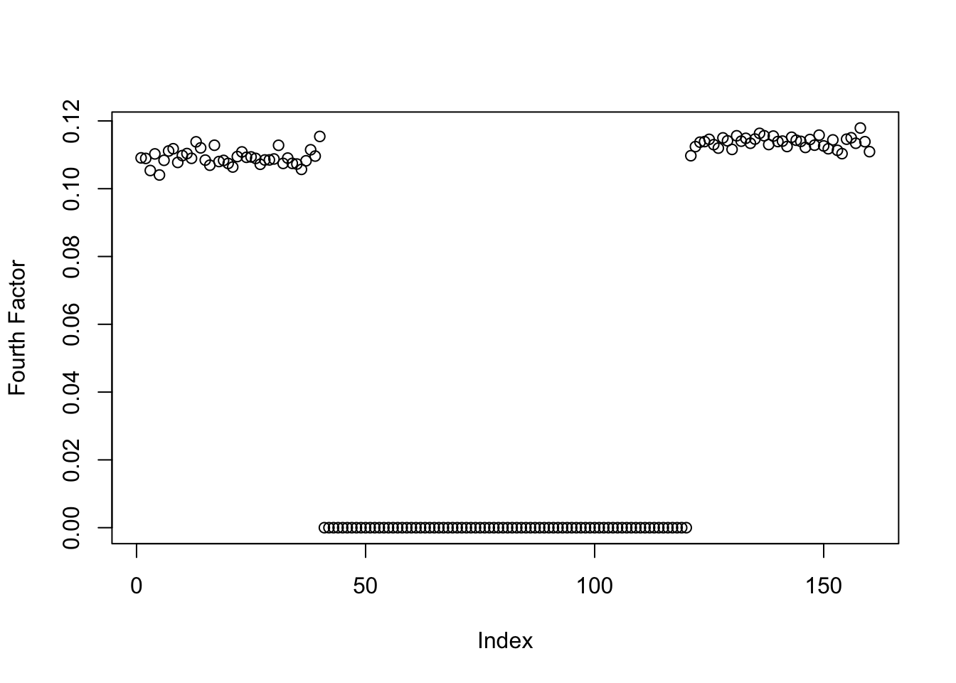 plot(symebcovmf_gb_fix_scale_fit$L_pm[,4], ylab = 'Fourth Factor')