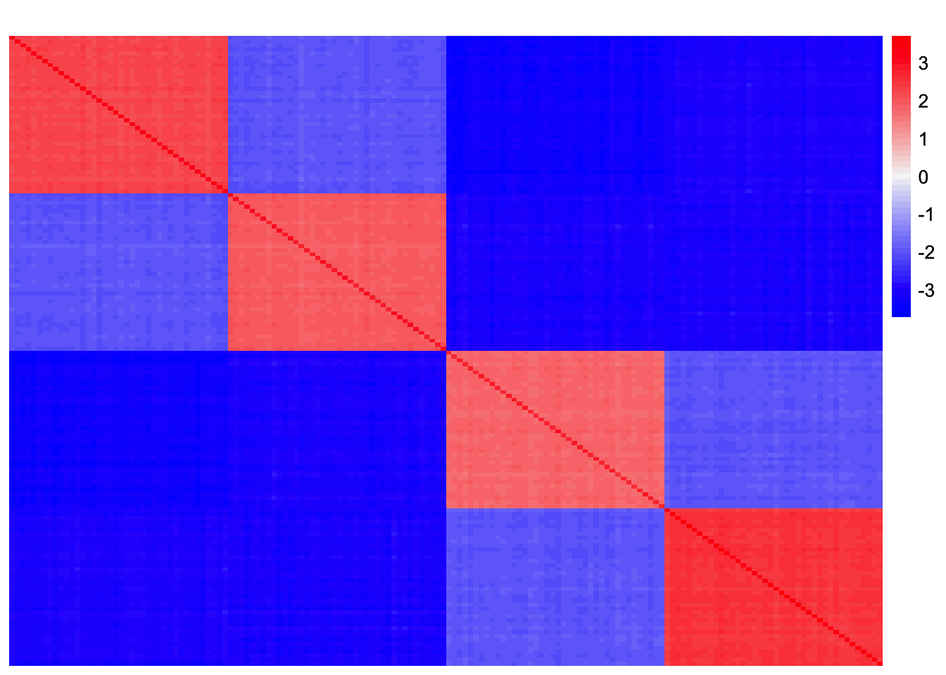 plot_heatmap(sim_data$YYt, colors_range = c('blue','gray96','red'), brks = seq(-max(abs(sim_data$YYt)), max(abs(sim_data$YYt)), length.out = 50))