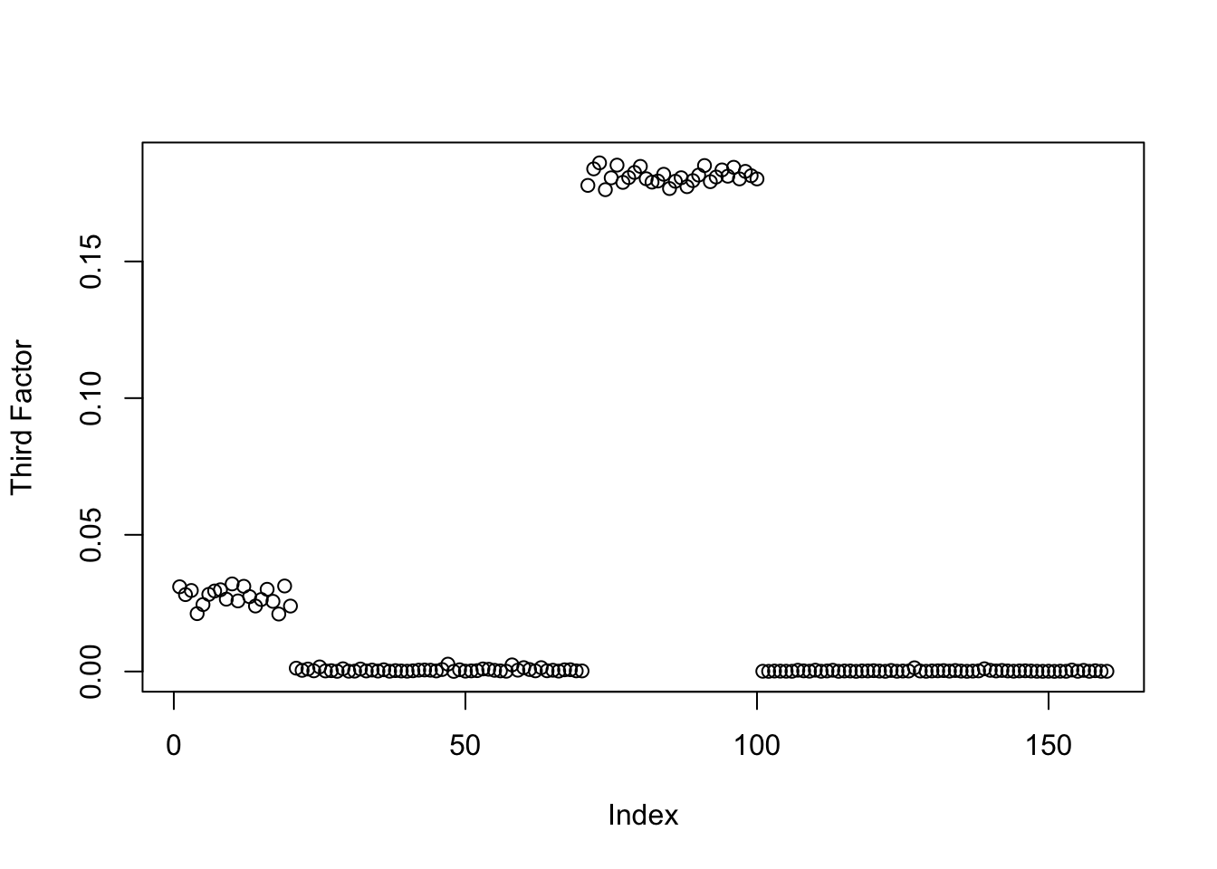 To check if this is a convergence issue, I try fitting the third factor initialized from the true single population effect factor.