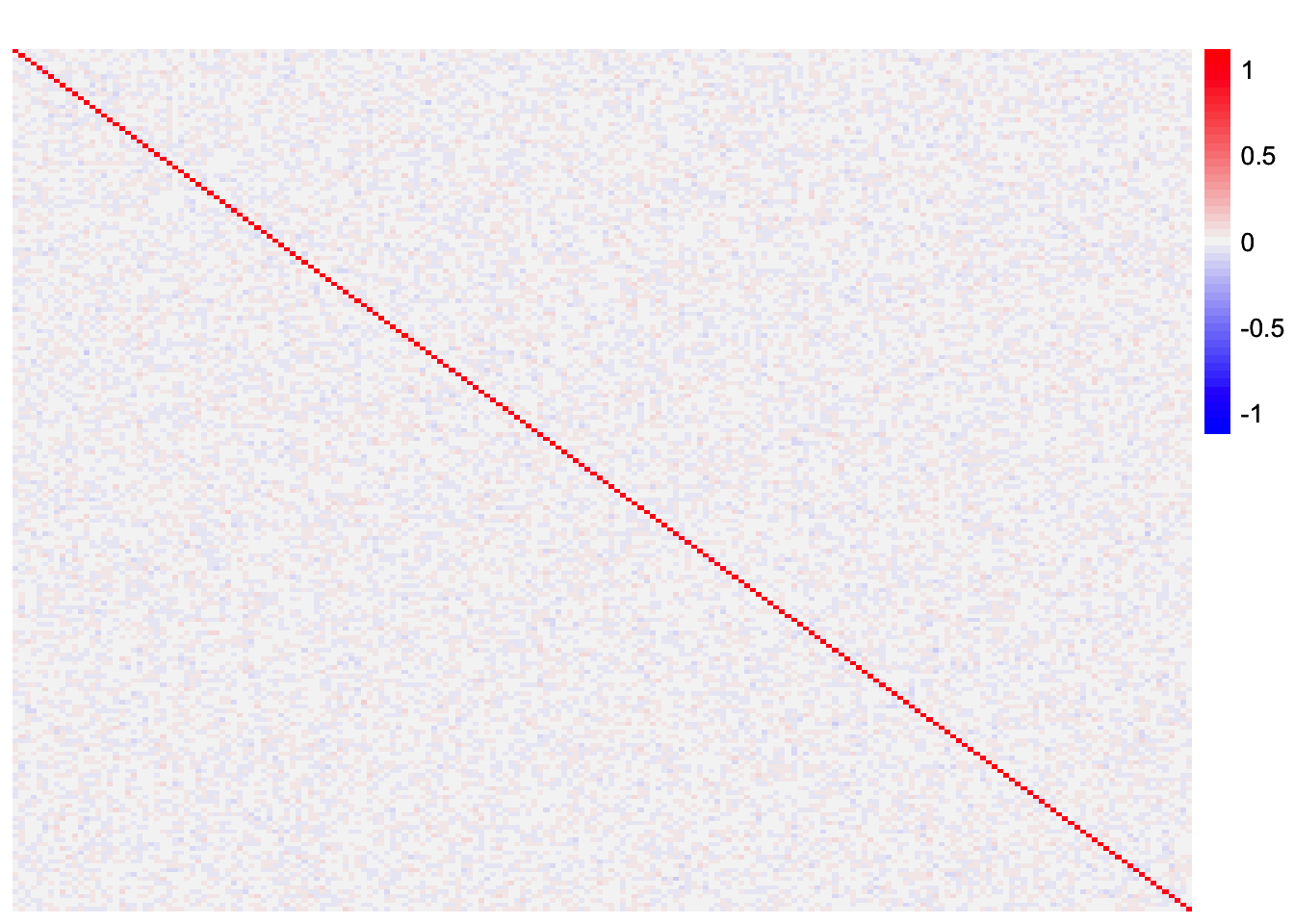 plot_heatmap(sim_data$YYt, colors_range = c('blue','gray96','red'), brks = seq(-max(abs(sim_data$YYt)), max(abs(sim_data$YYt)), length.out = 50))