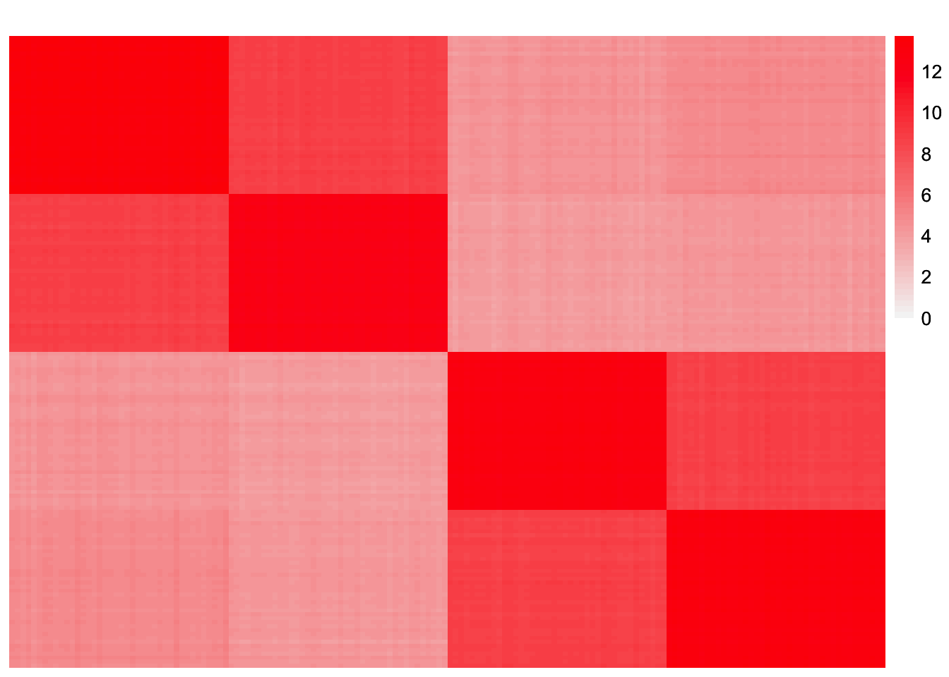 plot_heatmap(tcrossprod(resid_eigen$vectors[,1]), colors_range = c('blue','gray96','red'), brks = seq(-max(abs(tcrossprod(resid_eigen$vectors[,1]))), max(abs(tcrossprod(resid_eigen$vectors[,1]))), length.out = 50))