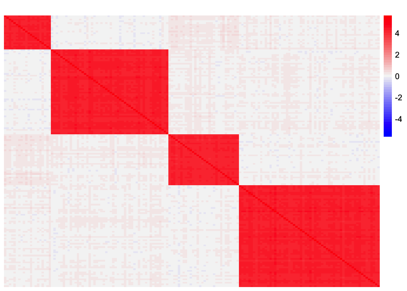 This is a scatter plot of \(\hat{L}_{backfit}\), the estimate from symEBcovMF with backfit: