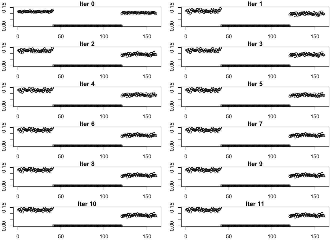 plot(estimates_binormal_exp_list[[i]], main = paste('Iter', (i-1)), ylab = 'L', ylim = c(min_y, max_y))