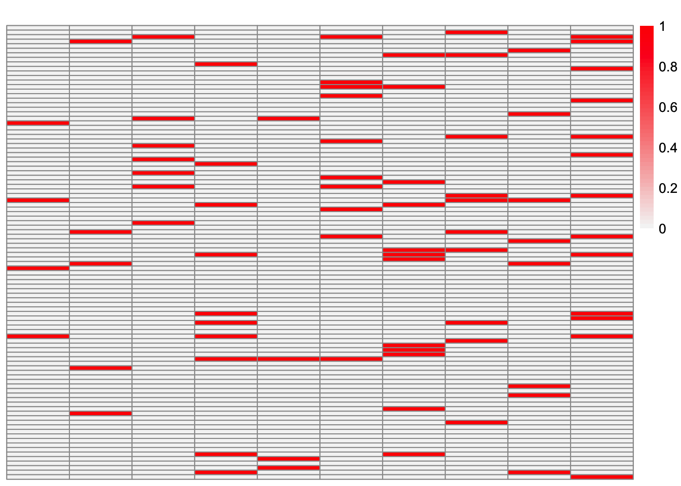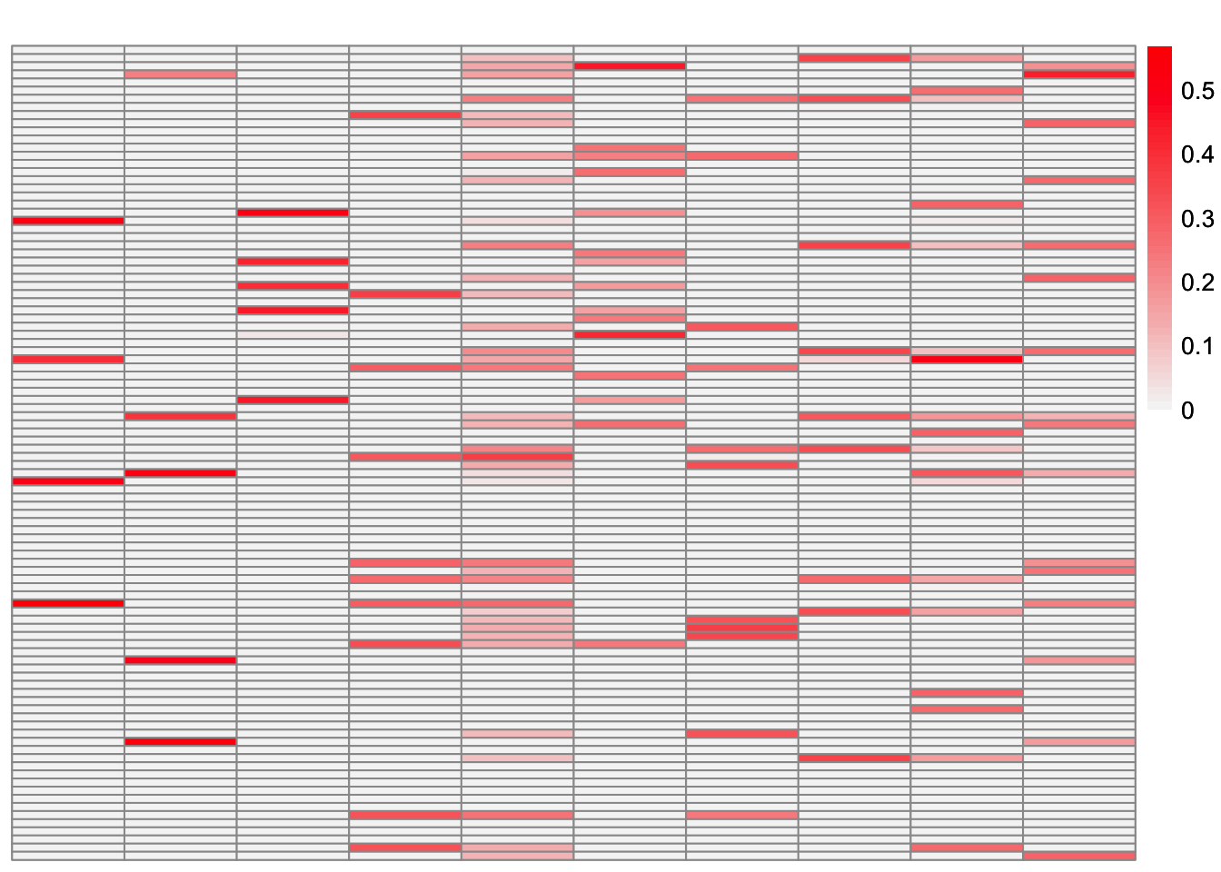 plot_heatmap(symebcovmf_overlap_refit_fit_L_permuted, brks = seq(0, max(symebcovmf_overlap_refit_fit_L_permuted), length.out = 50))