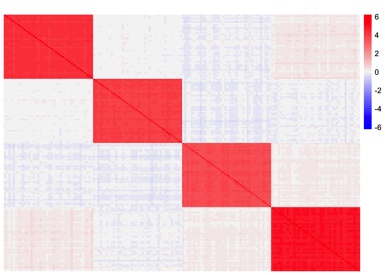 plot_heatmap(sim_data$YYt, colors_range = c('blue','gray96','red'), brks = seq(-max(abs(sim_data$YYt)), max(abs(sim_data$YYt)), length.out = 50))
