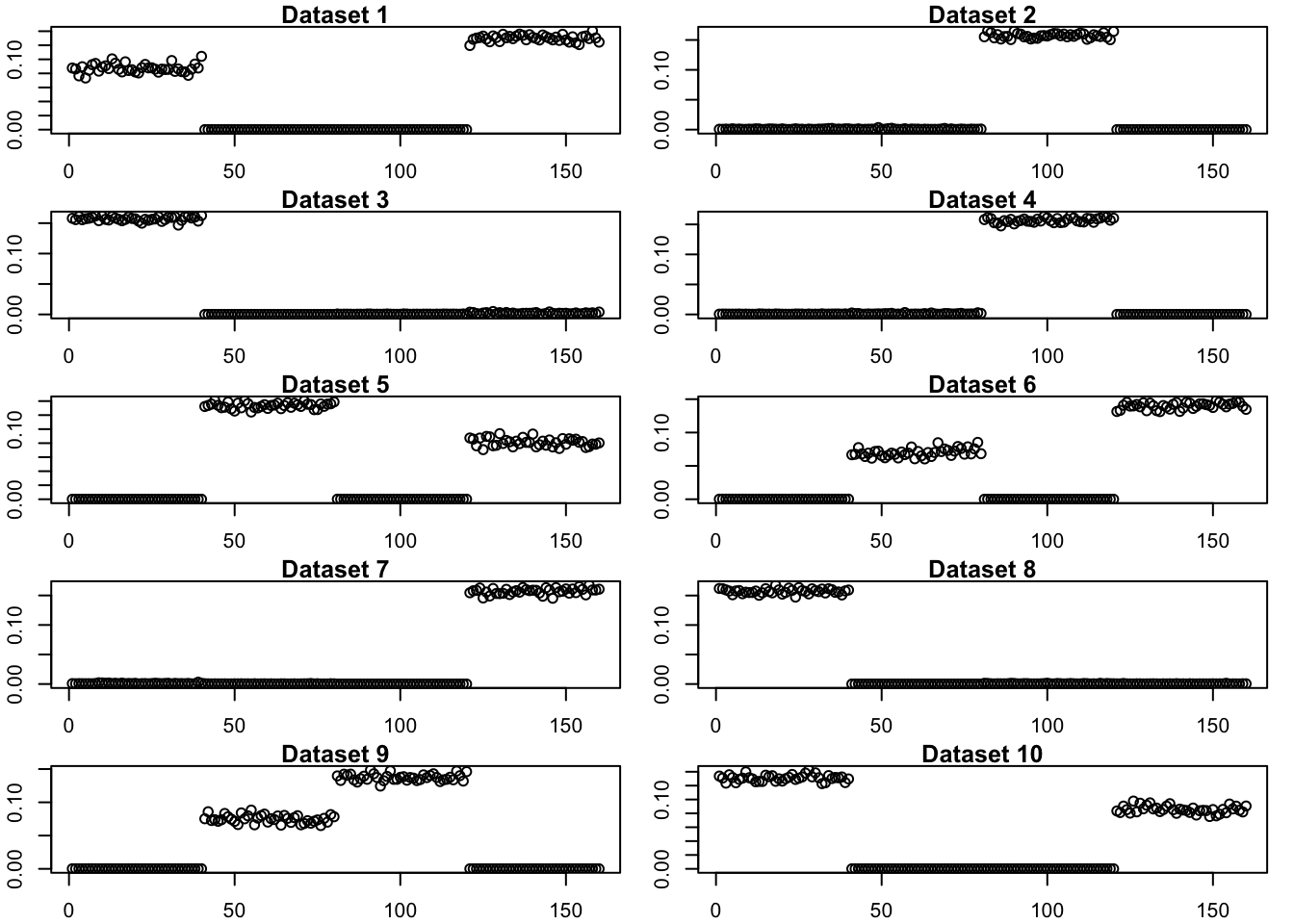 plot(exp_symebcovmf_lists[[i]], main = paste('Dataset', i), ylab = 'Fourth Factor')
