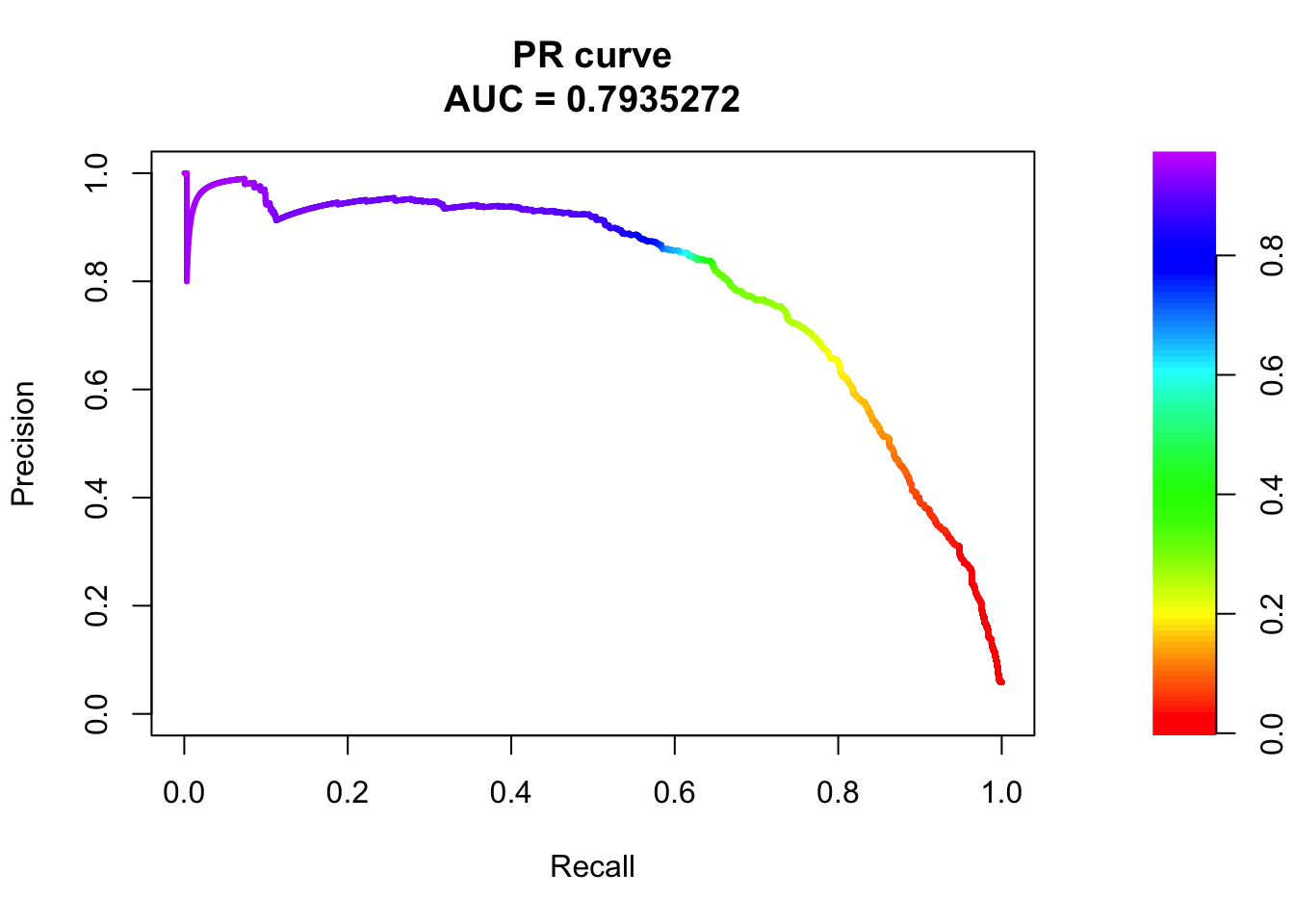 pr <- pr.curve(scores.class0 = fg, scores.class1 = bg, curve = T)