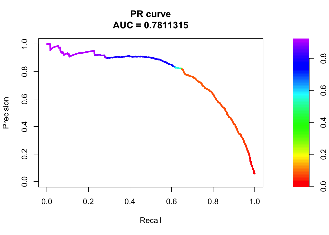 pr <- pr.curve(scores.class0 = fg, scores.class1 = bg, curve = T)