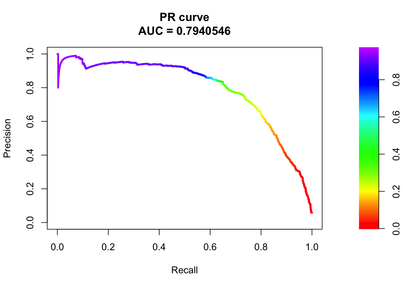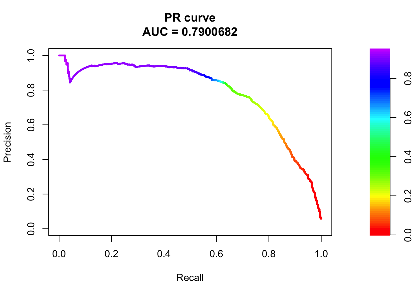 pr <- pr.curve(scores.class0 = fg, scores.class1 = bg, curve = T)