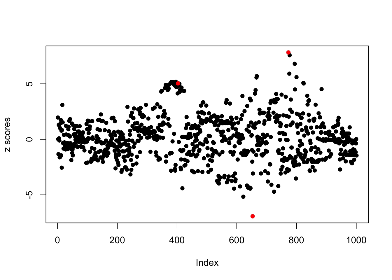 plot(z_scores, pch=16, ylab='z scores')