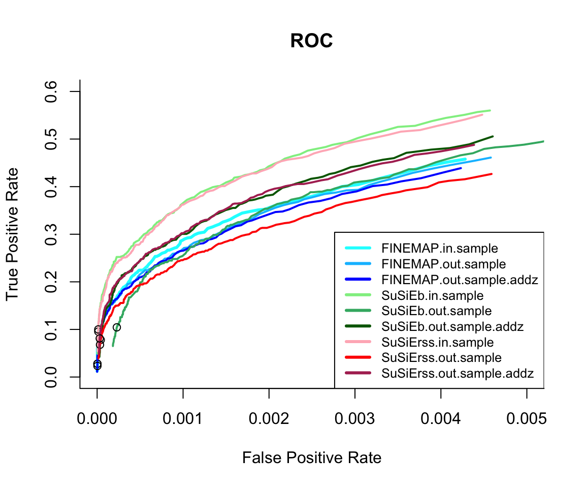 roc = list(FINEMAP.in.sample = finemap$in_sample, FINEMAP.out.sample = finemap$out_sample, FINEMAP.out.sample.addz = finemap$out_sample.addz, SuSiEb.in.sample = susieb$in_sample, SuSiEb.out.sample = susieb$out_sample, SuSiEb.out.sample.addz = susieb$out_sample.addz, SuSiErss.in.sample = susierss$in_sample, SuSiErss.out.sample = susierss$out_sample, SuSiErss.out.sample.addz = susierss$out_sample.addz)
