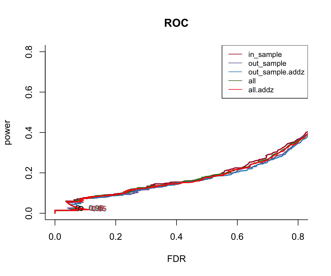 plot(yy$x, yy$y, t="l", col=colors[i], ylab = "power", xlab ="FDR", main = 'ROC', bty='l', lwd = 2, xlim = c(0,0.8), ylim = c(0,0.8))